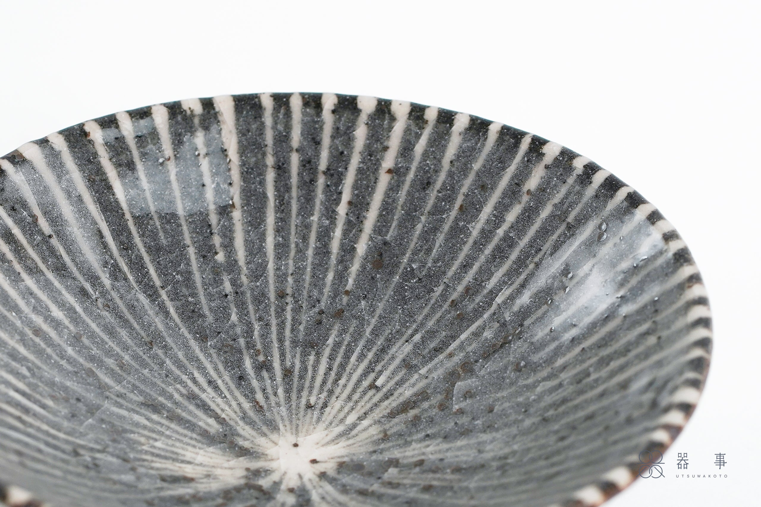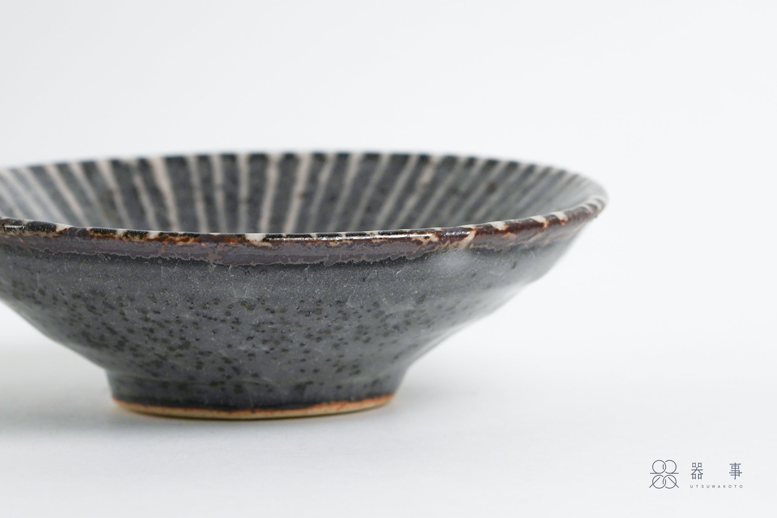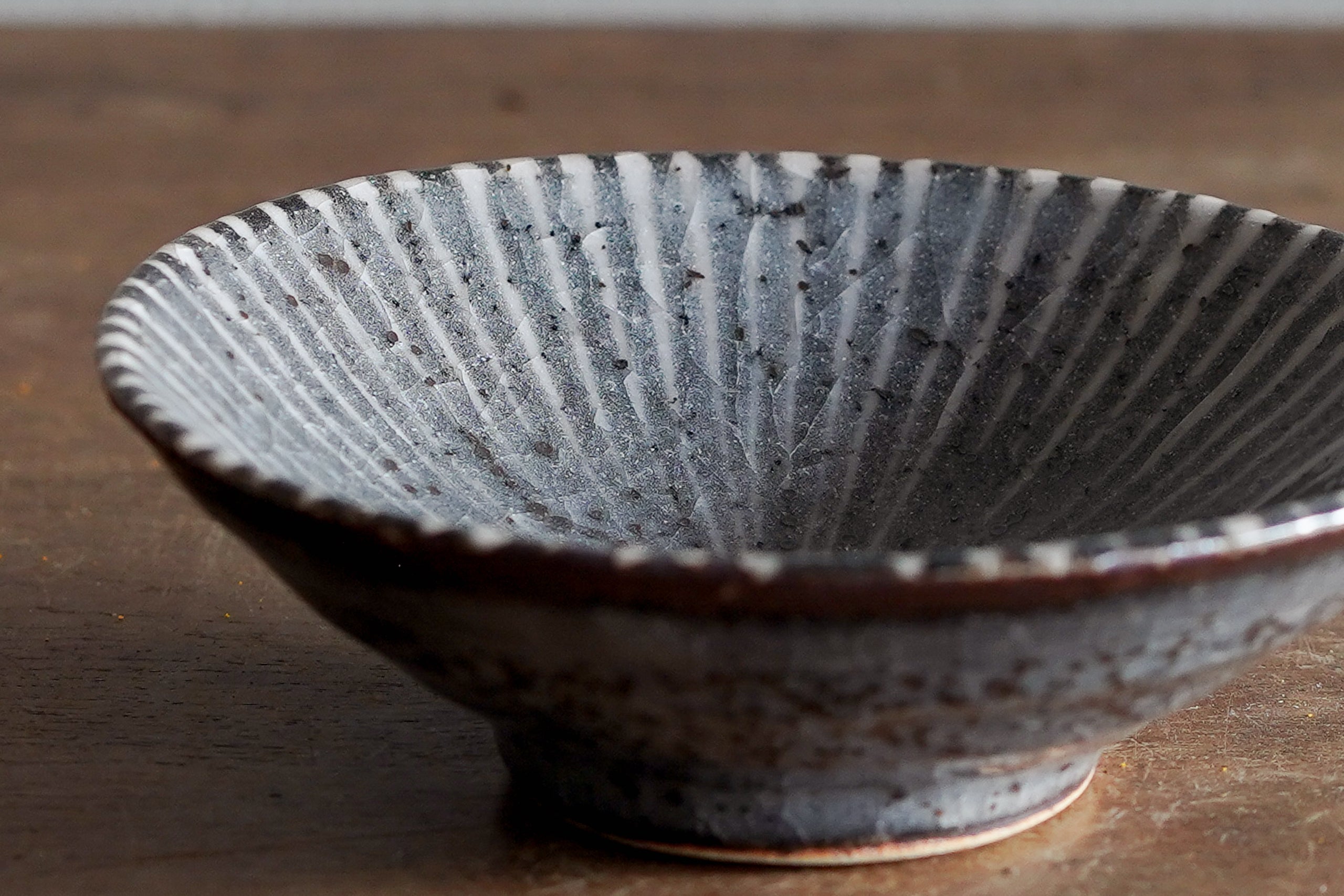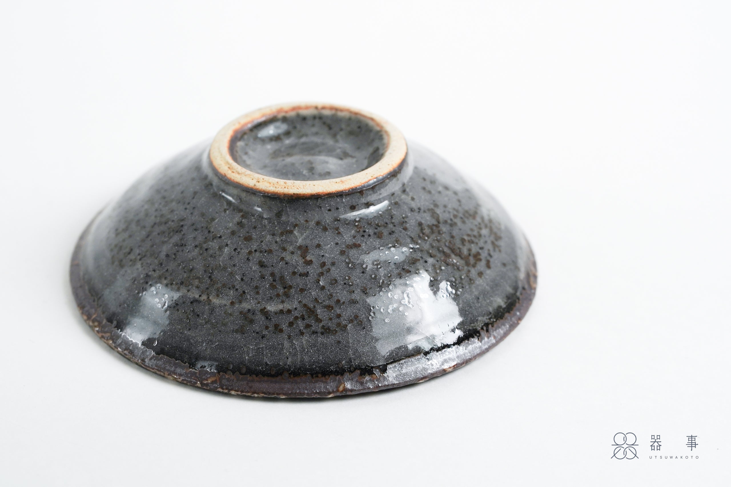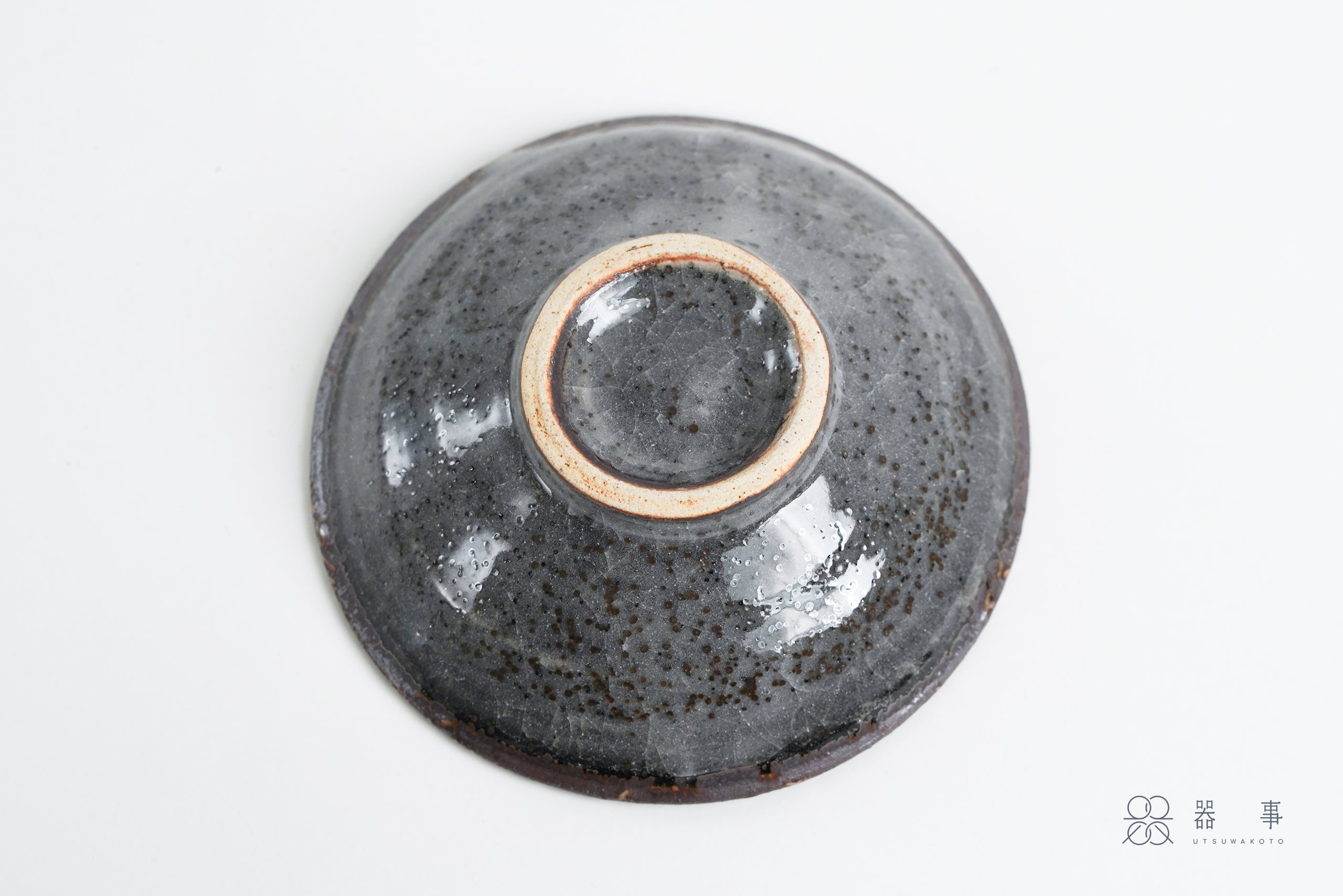 外側的釉面呈現較為深沉的灰色,表面散布著密密的鐵粉小點,質感沉穩內斂。