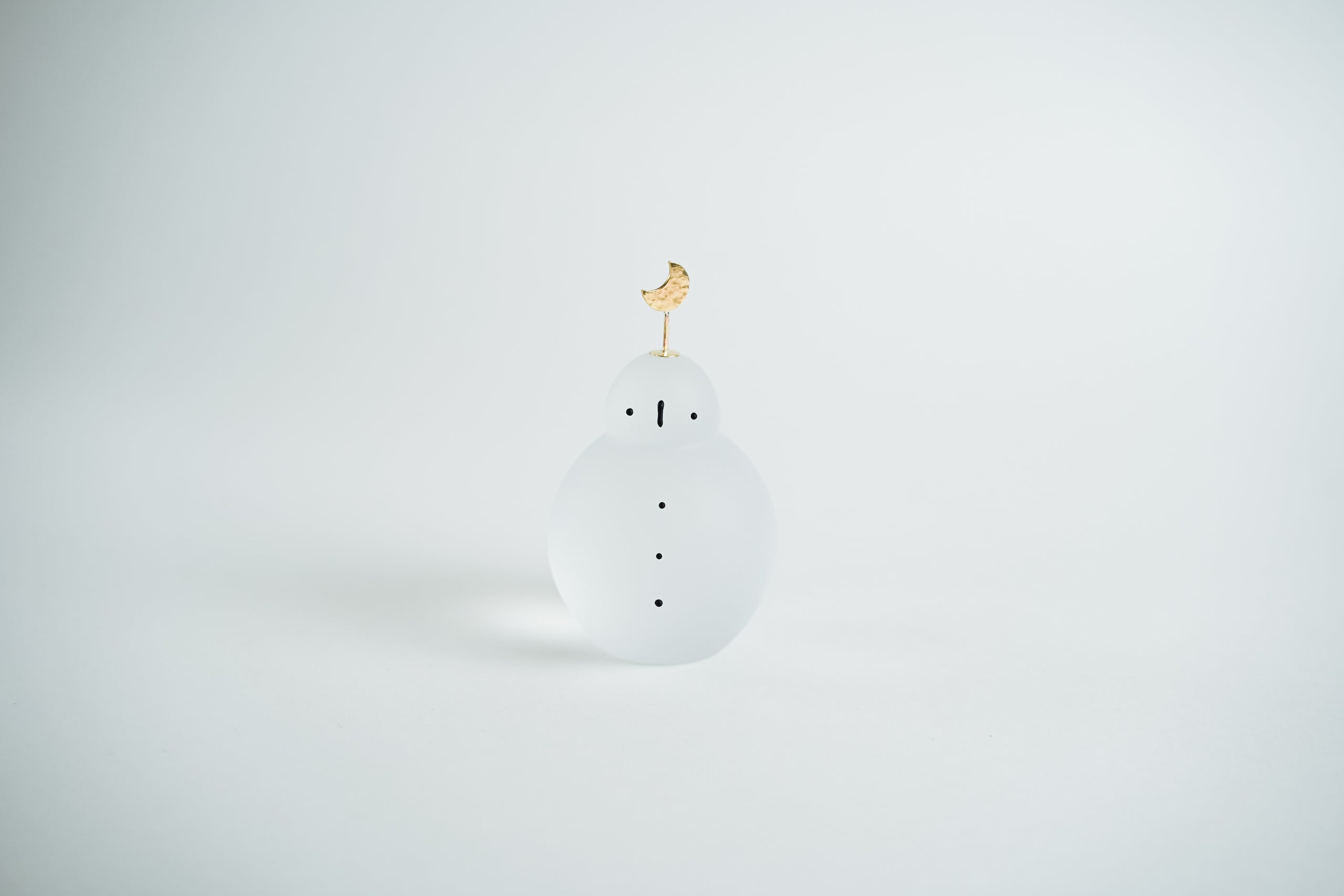 「玻璃雪人 霧面」的頭上裝飾為月亮形狀🌙。