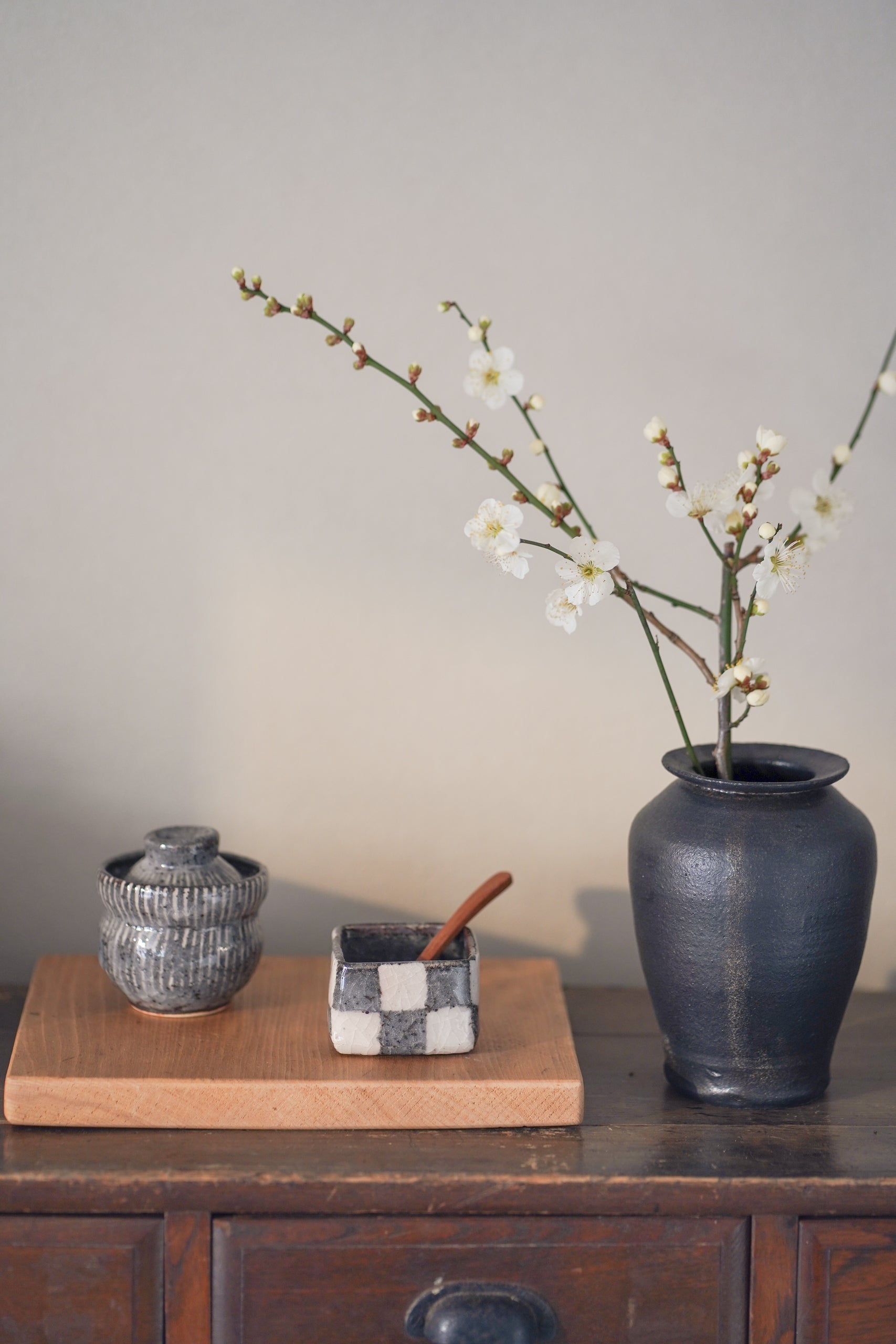 「蓋物」為帶有蓋子的器物總稱。蓋子與碗口的尺寸契合度考驗作家的技術,蓋物帶著小蓋子的造型也讓器物更加充滿特別感,值得收藏。