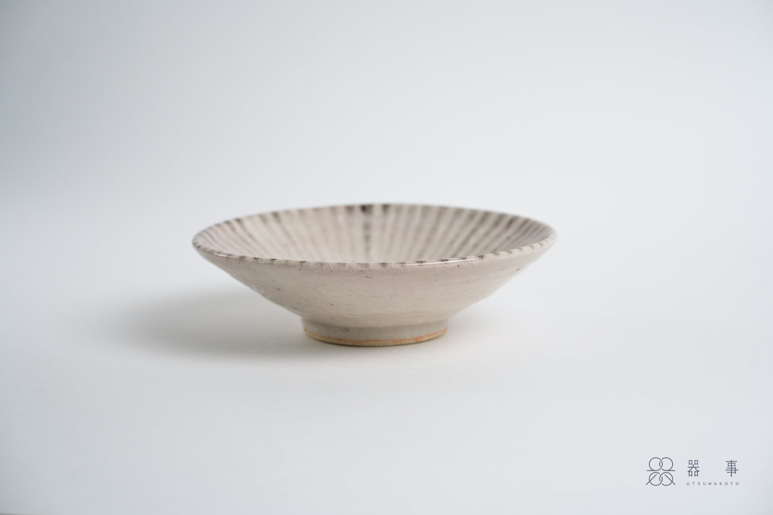 志野釉是美濃燒最具代表性的釉藥之一,以長石為原料,燒成後的釉面呈現柔和的乳白燕麥色,帶著溫潤的厚度感。在燒成過程中會透出淡淡的緋色(帶粉橘色調的暖色),這是志野釉特有的色彩變化。