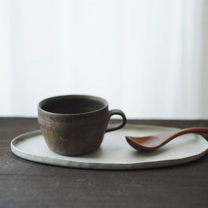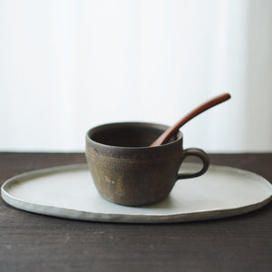 大原拓也從1997年開始製陶,在2011年於滋賀縣成立自己的工房「craft-k」。他的作品總有質樸溫潤的風格,讓人感受到陶器之美。主要使用土板成型的手法,並在製作過程中留下「指印」,特意保留手作感,這是作家陶器特有的深度韻味。令人欣賞的是大原拓也對於釉藥顏色的掌握,例如少見的淡墨色、霧灰色等,讓器物呈現出與眾不同的樣貌,透過精緻洗鍊的霧面釉薬處理,成就了兼具手作的溫度感與現代感的器物。「用土作的陶器,在使用過程中會出現缺角,而我想做出連缺角也讓人感受到魅力的作品」大原拓也說道。