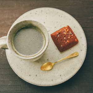 器物最大的特色是不規則的孔洞與斑點,十分特別,總會讓人聯想到河邊的石頭,令人忍不住想拿在手上欣賞。