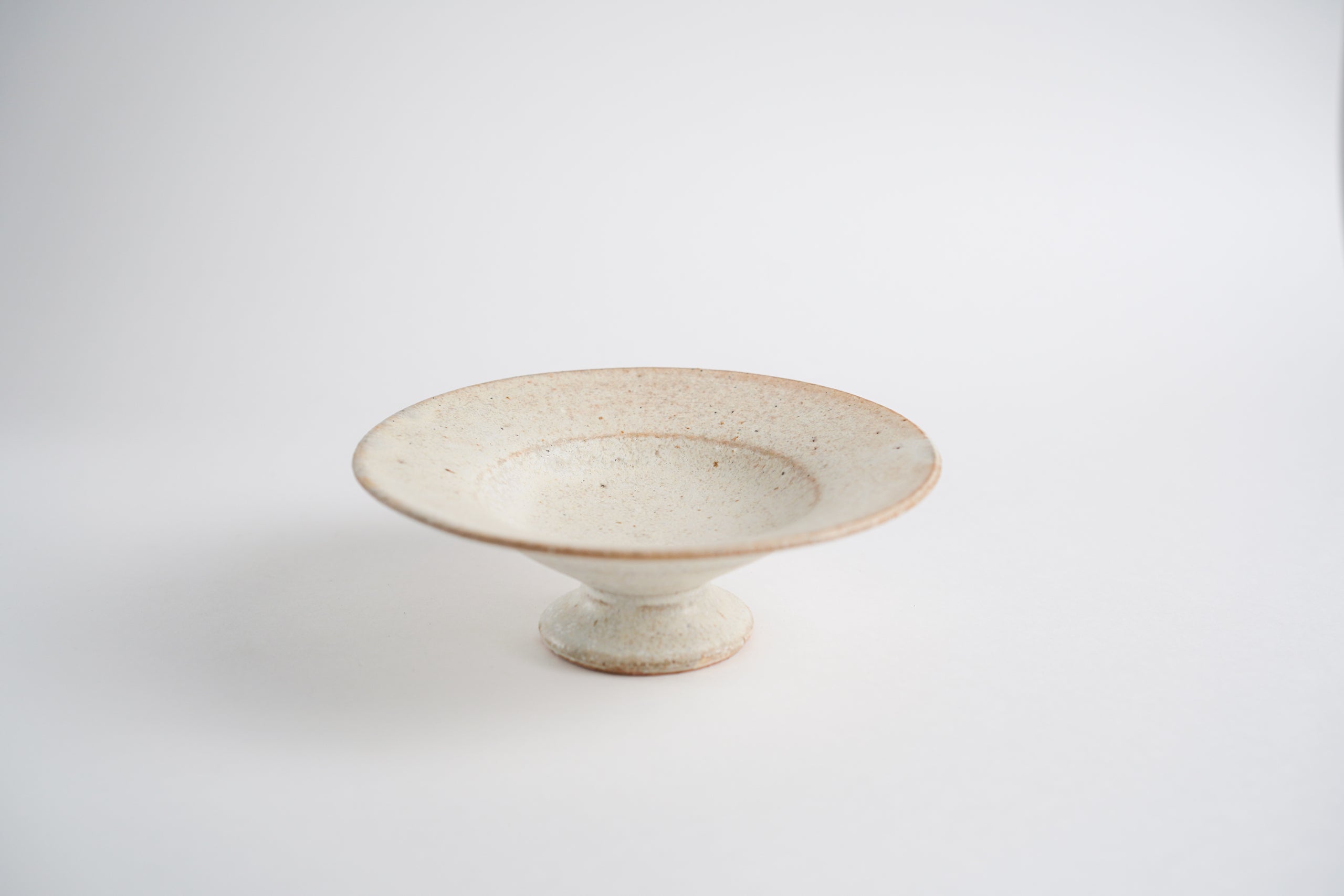 山本一仁老師製作的高台皿,優雅的高台造型與溫潤的霧面白釉,展現獨特的器物美感。