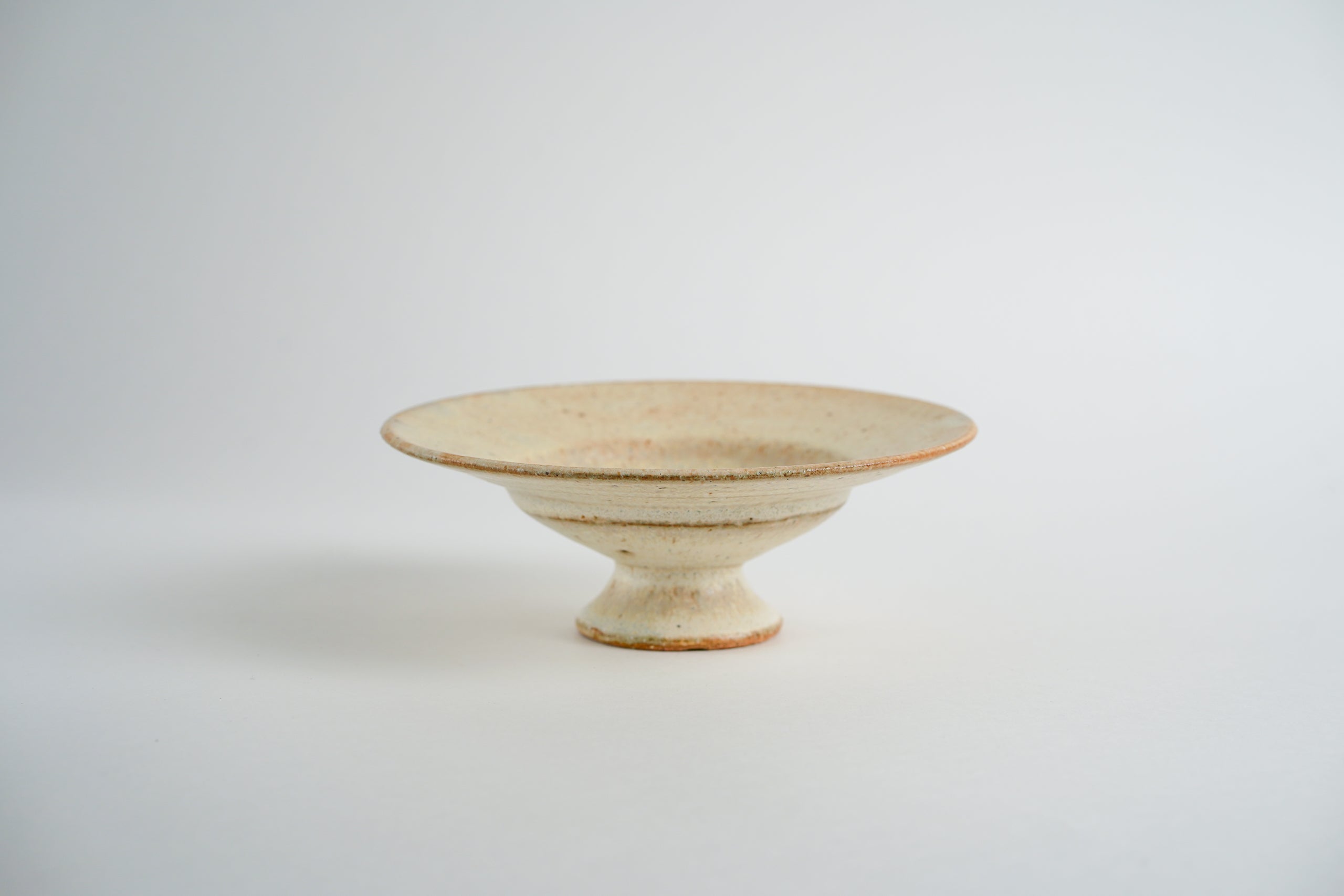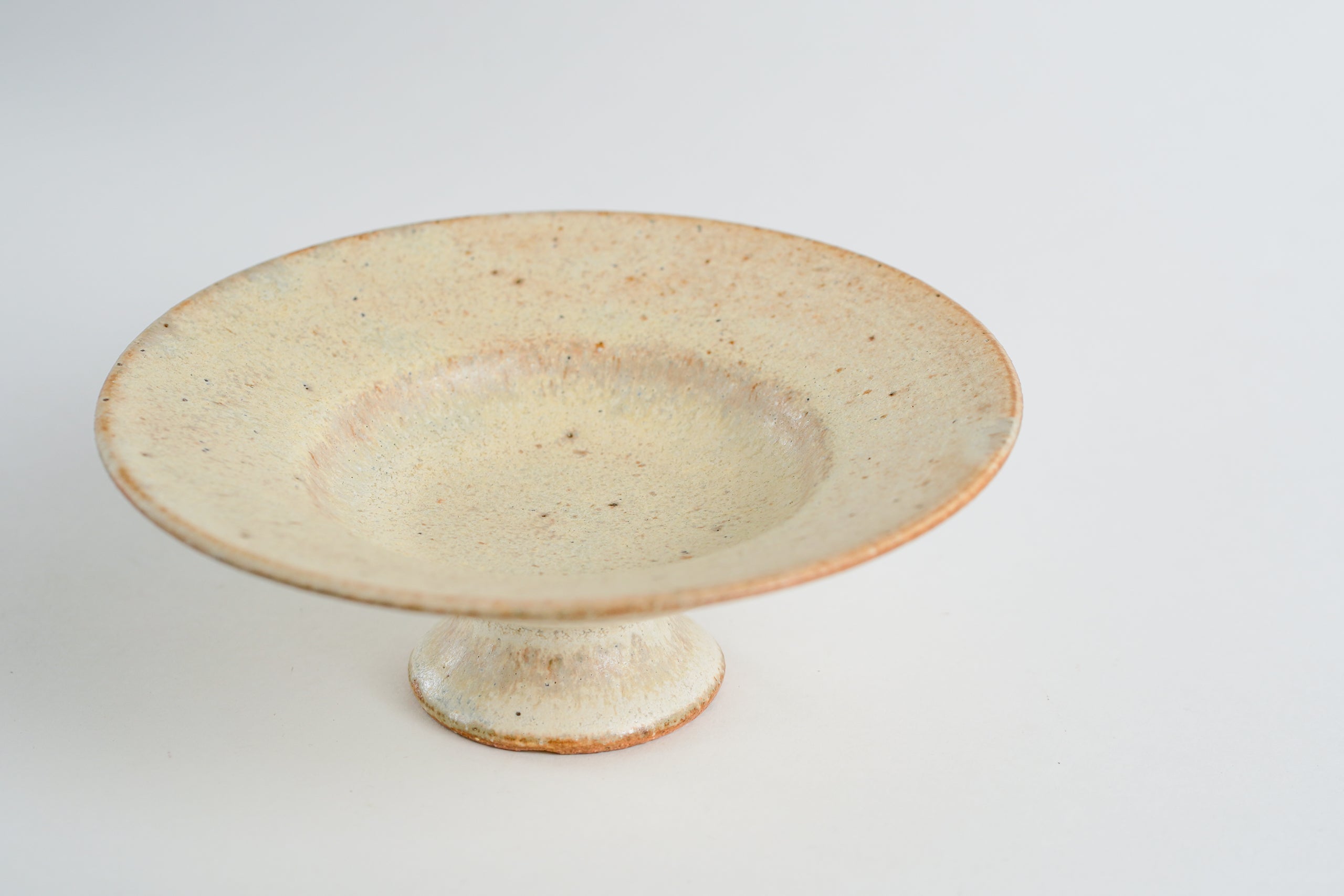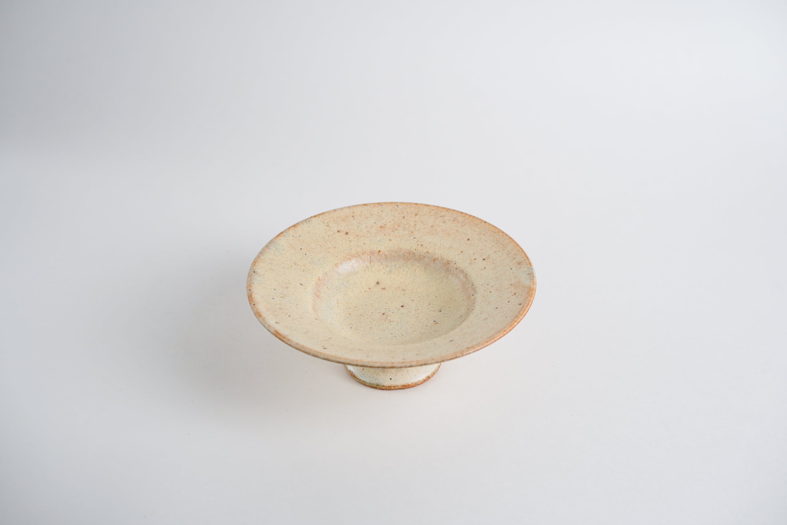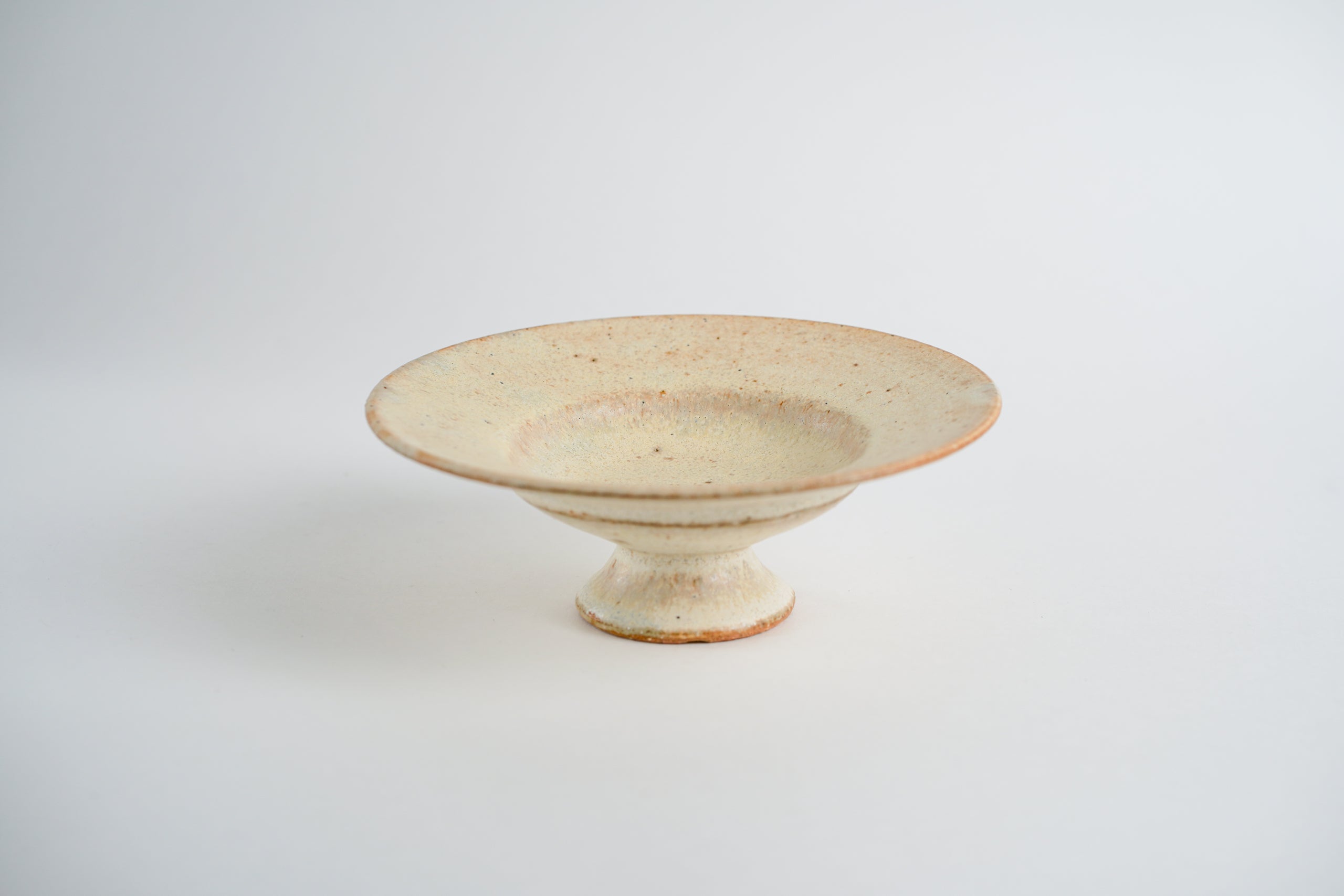 高台設計將盤面托高,讓器物呈現輕盈而優雅的姿態。盤面中央有淺淺的凹陷,適合盛放各式食物。