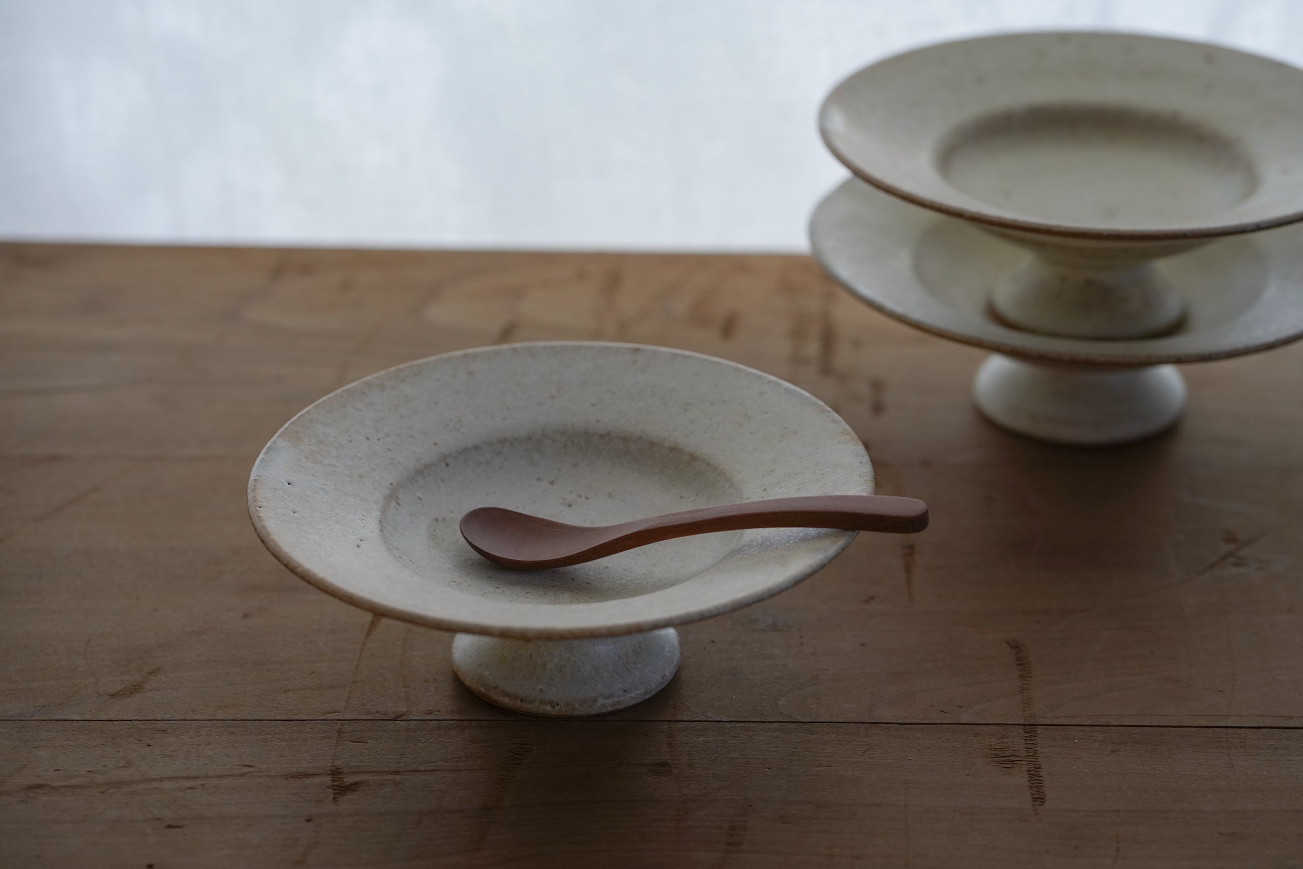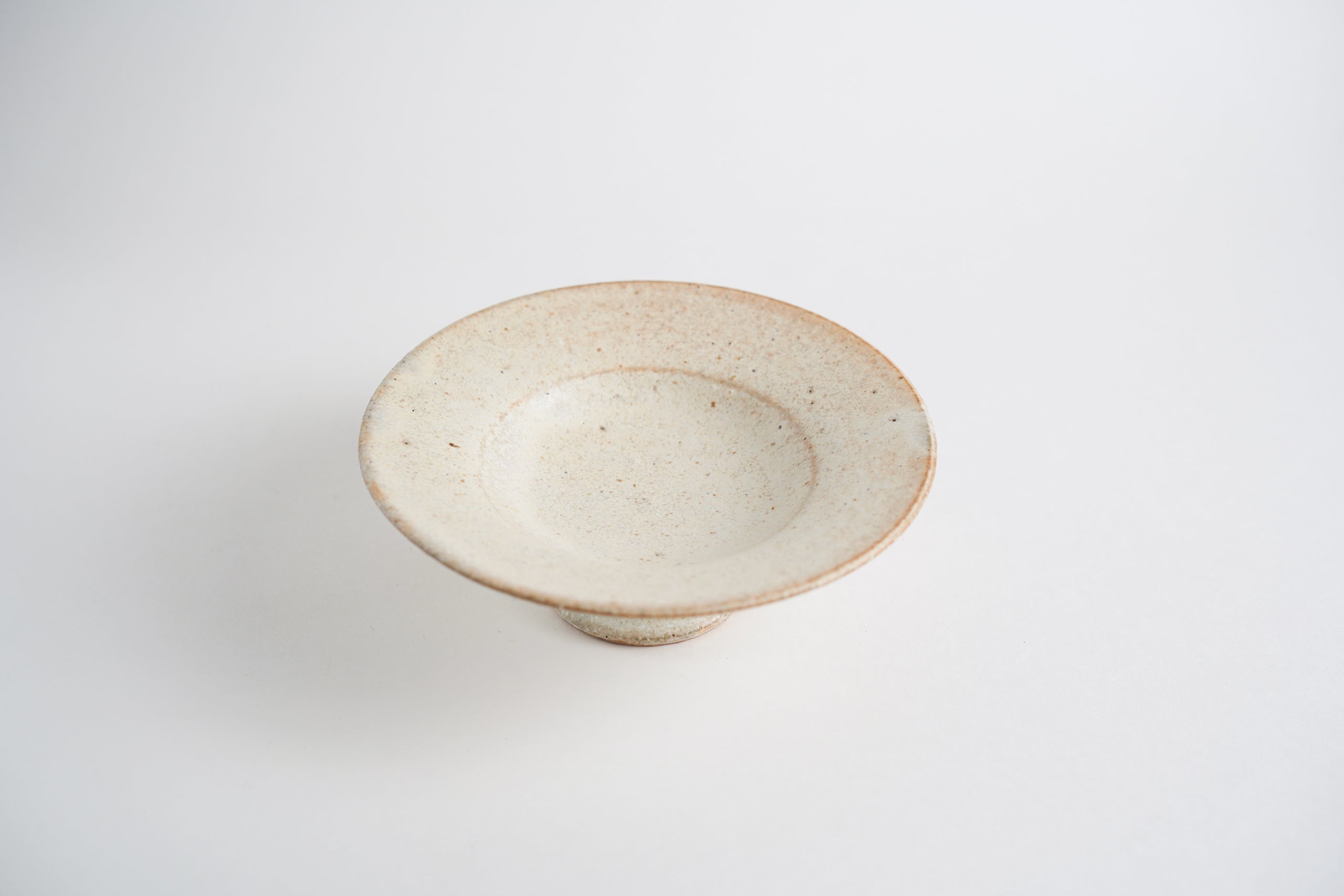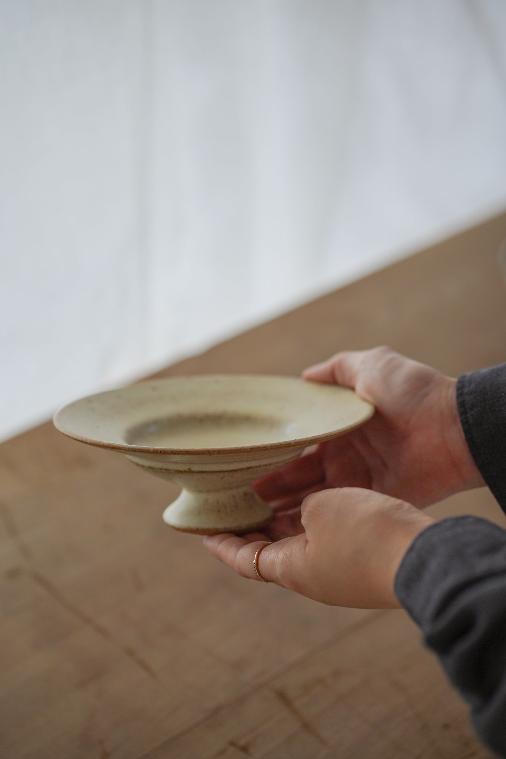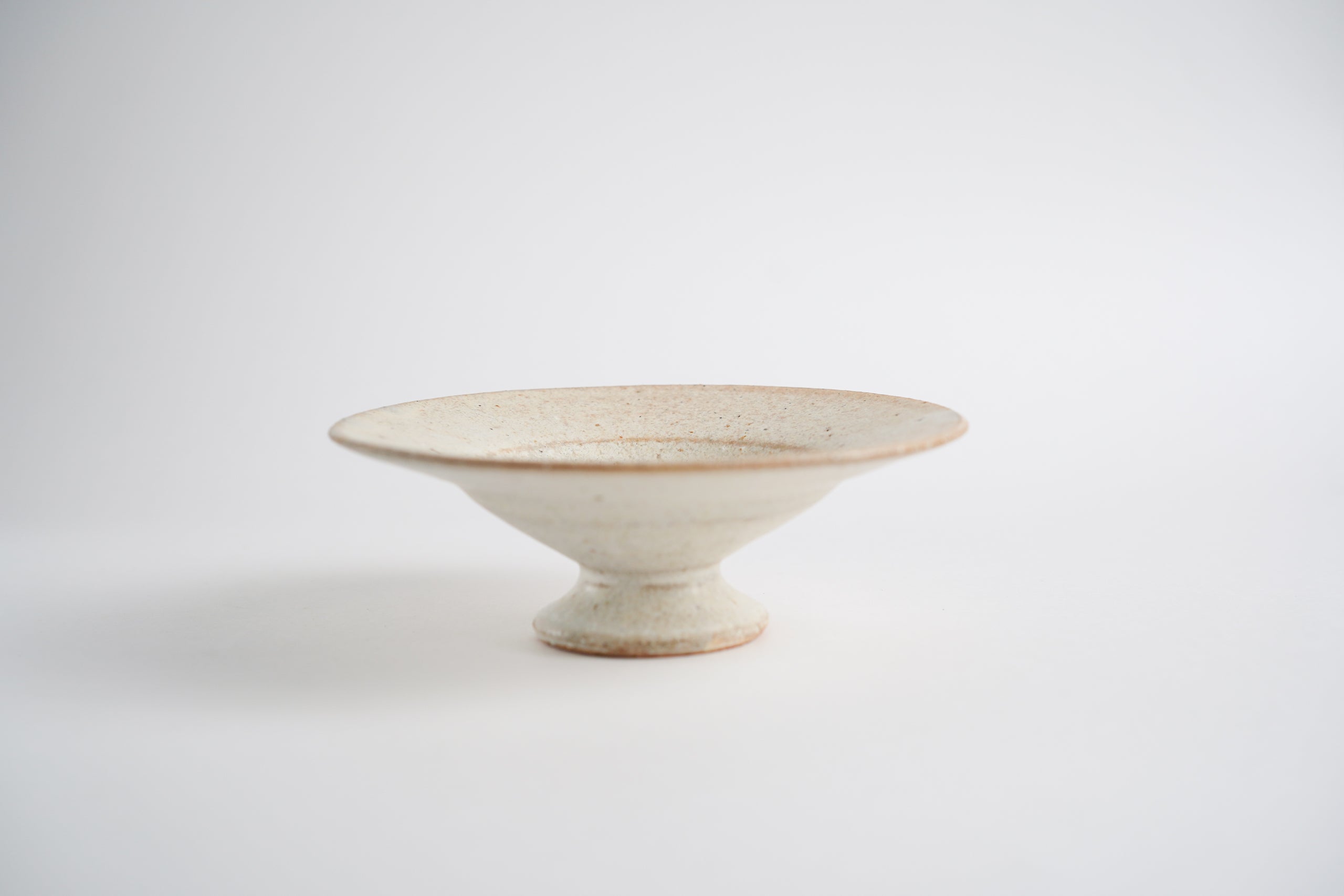 高台設計將盤面托高,讓器物呈現輕盈而優雅的姿態。盤面中央有淺淺的凹陷,適合盛放各式食物。
