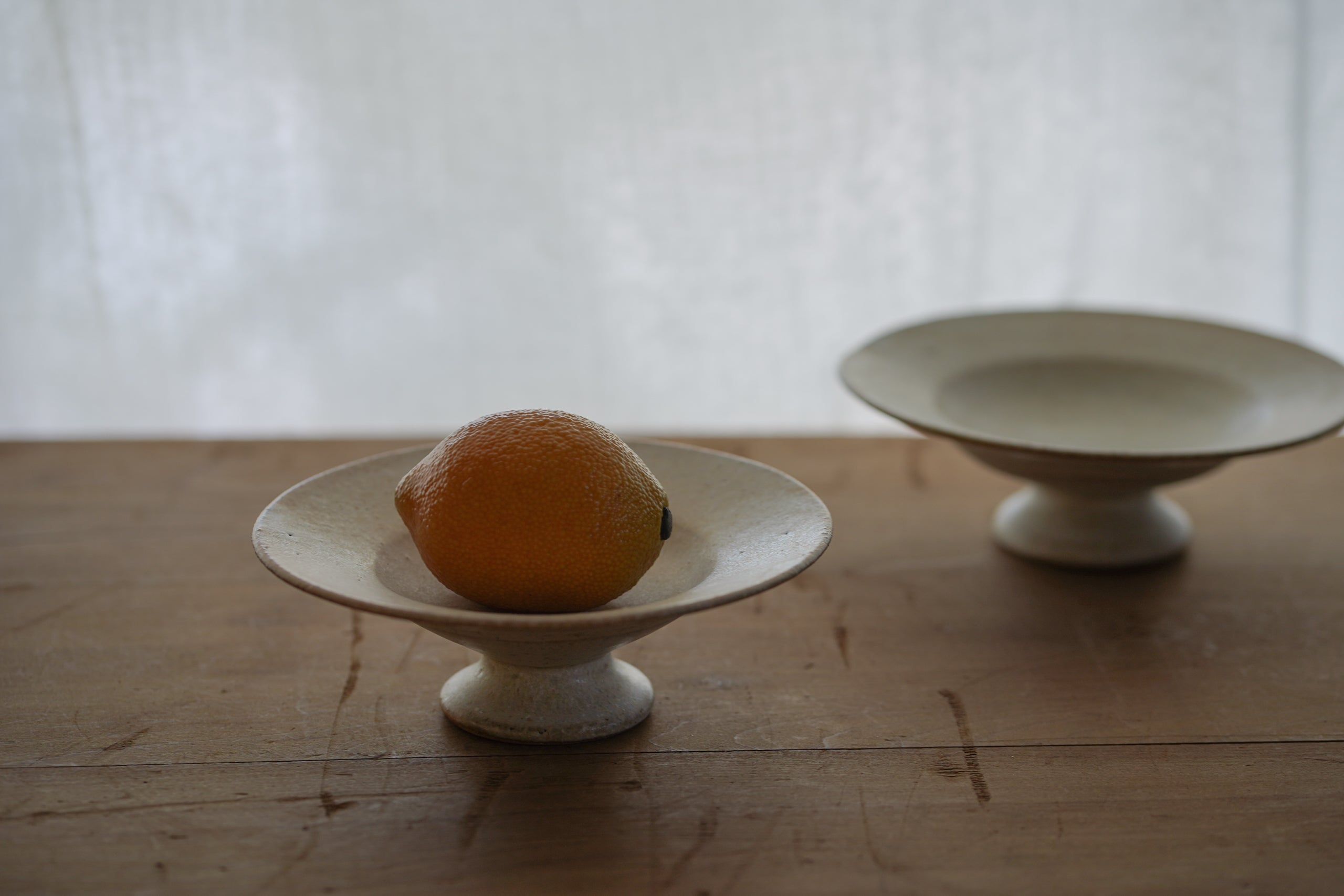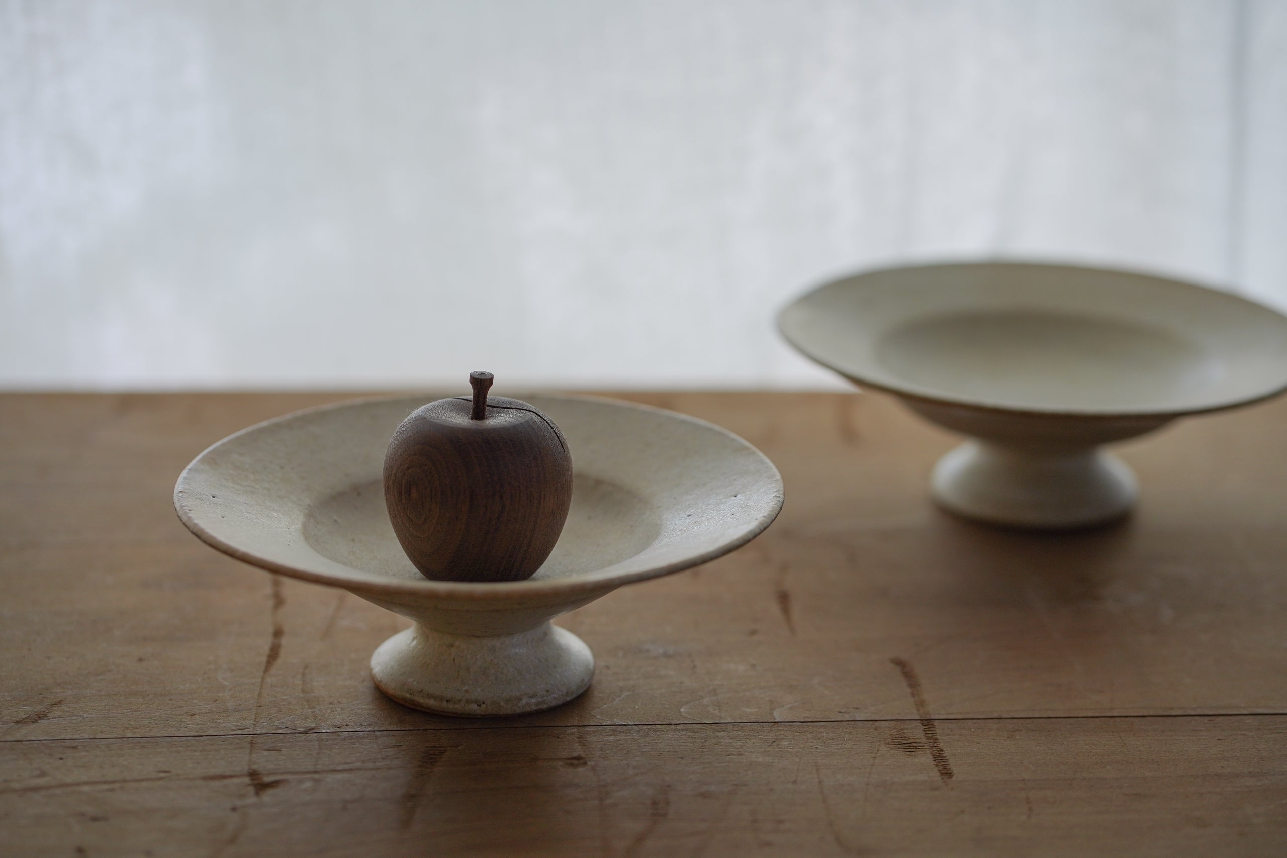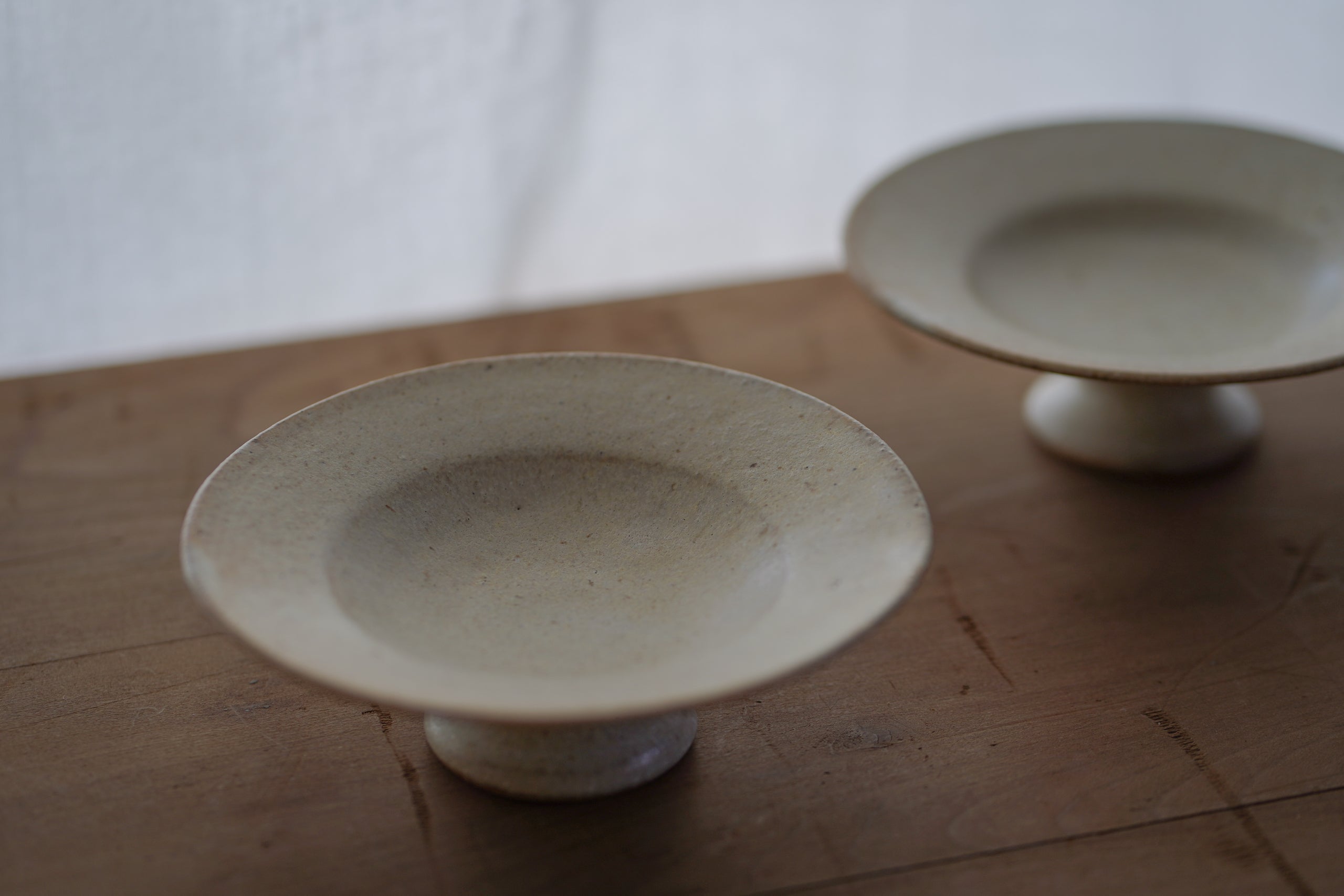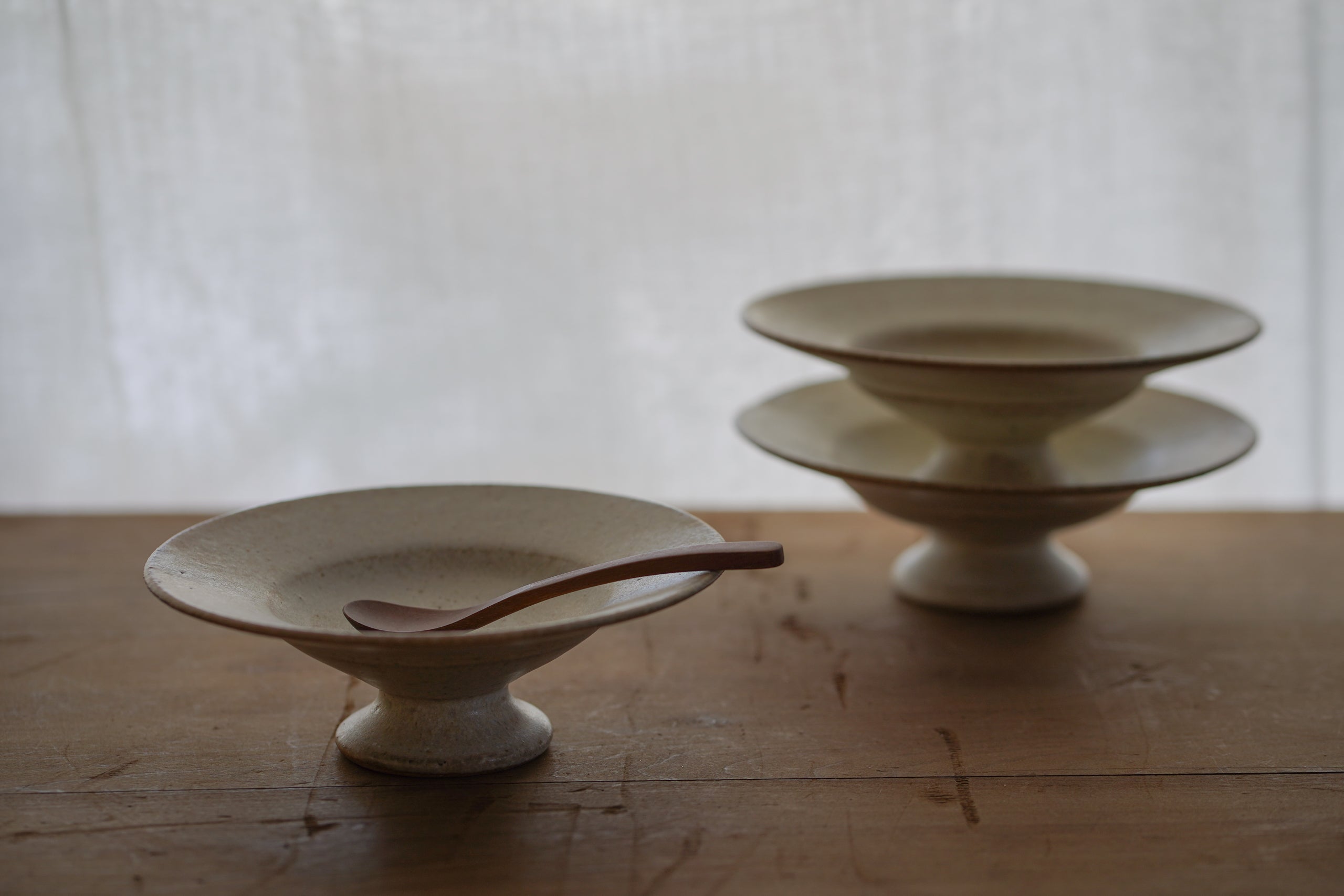 高台設計將盤面托高,讓器物呈現輕盈而優雅的姿態。盤面中央有淺淺的凹陷,適合盛放各式食物。