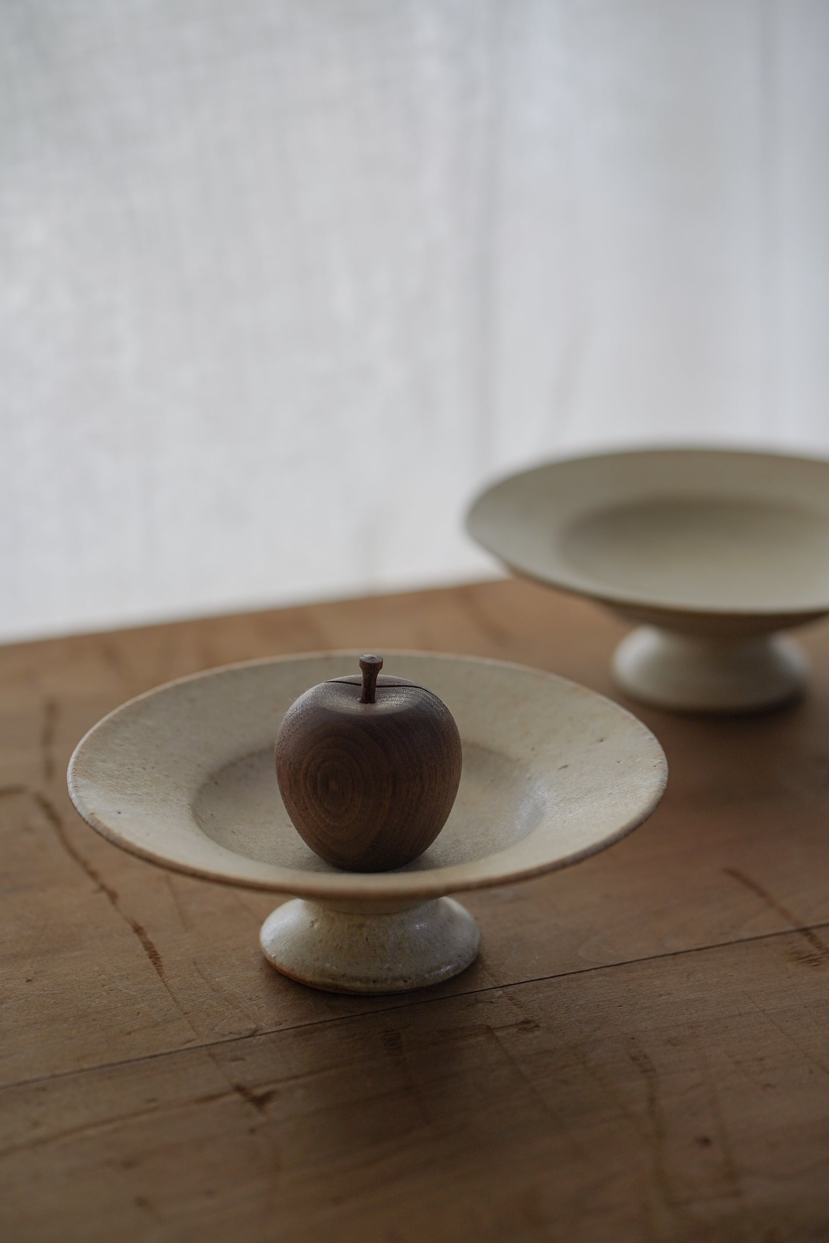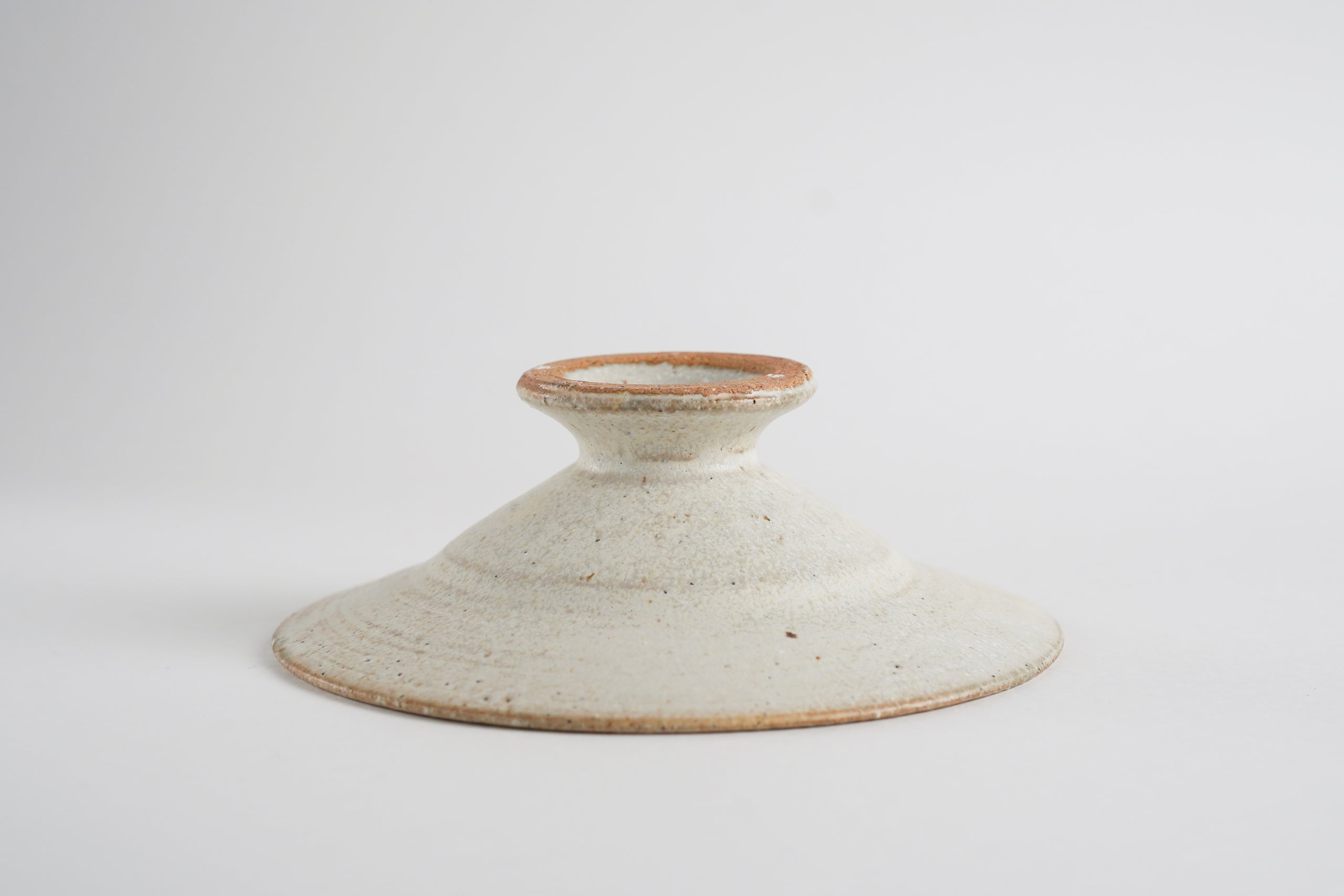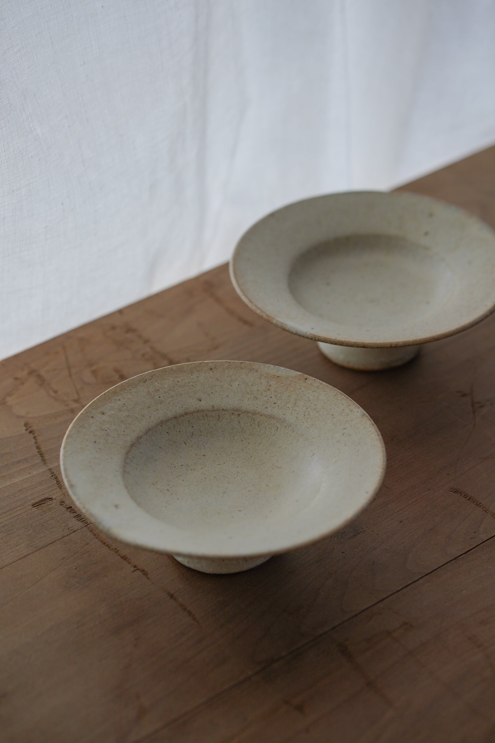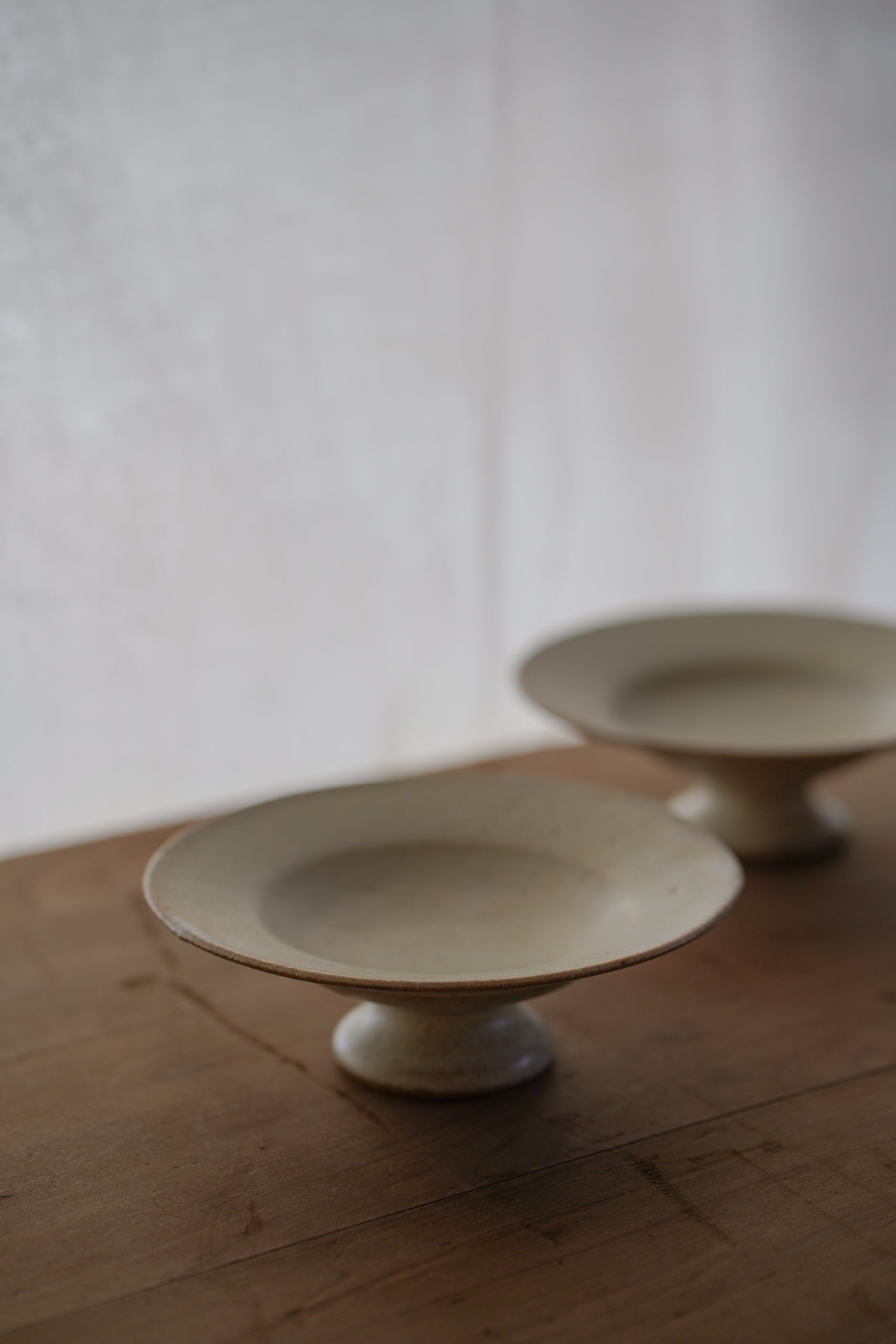 高台設計將盤面托高,讓器物呈現輕盈而優雅的姿態。盤面中央有淺淺的凹陷,適合盛放各式食物。