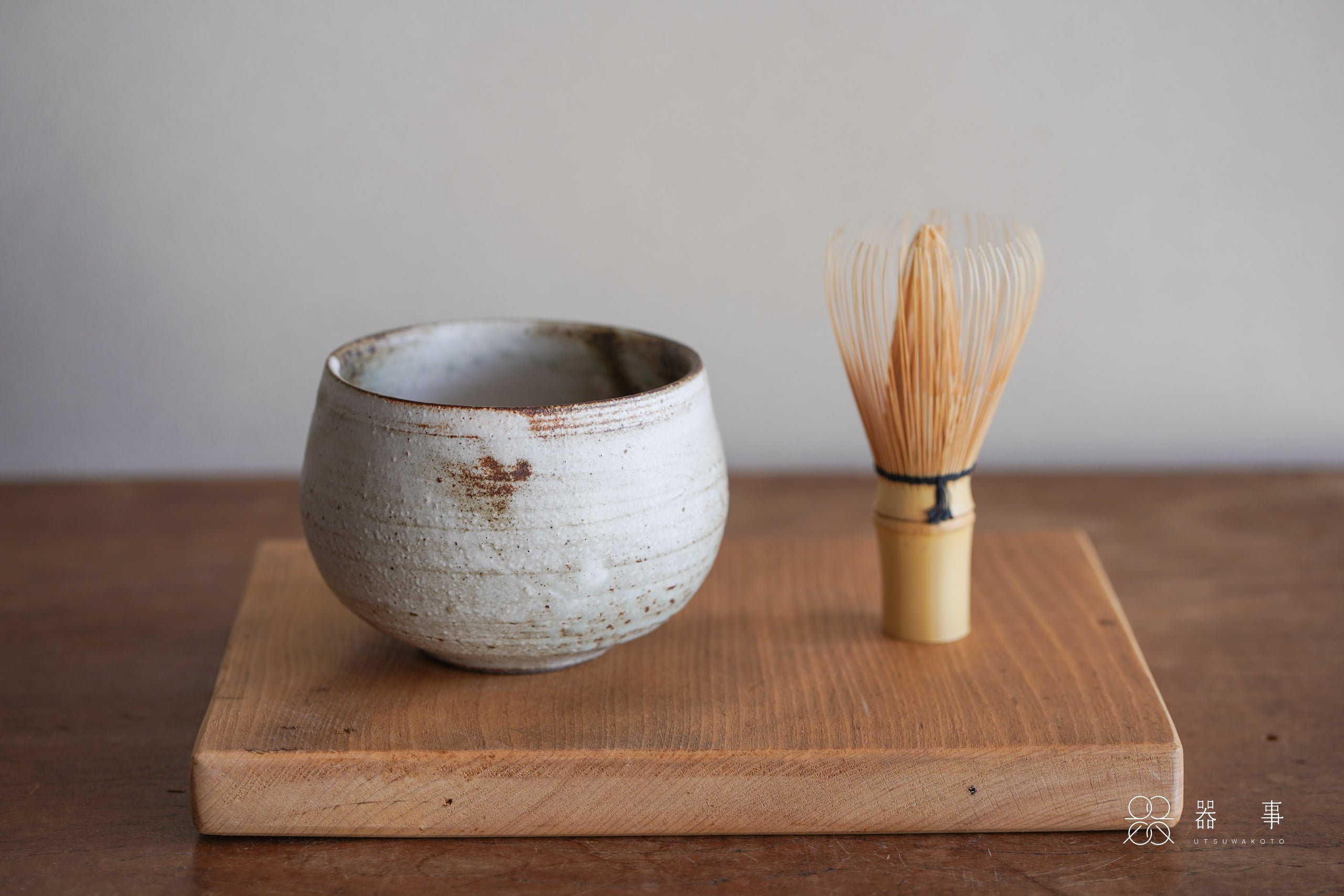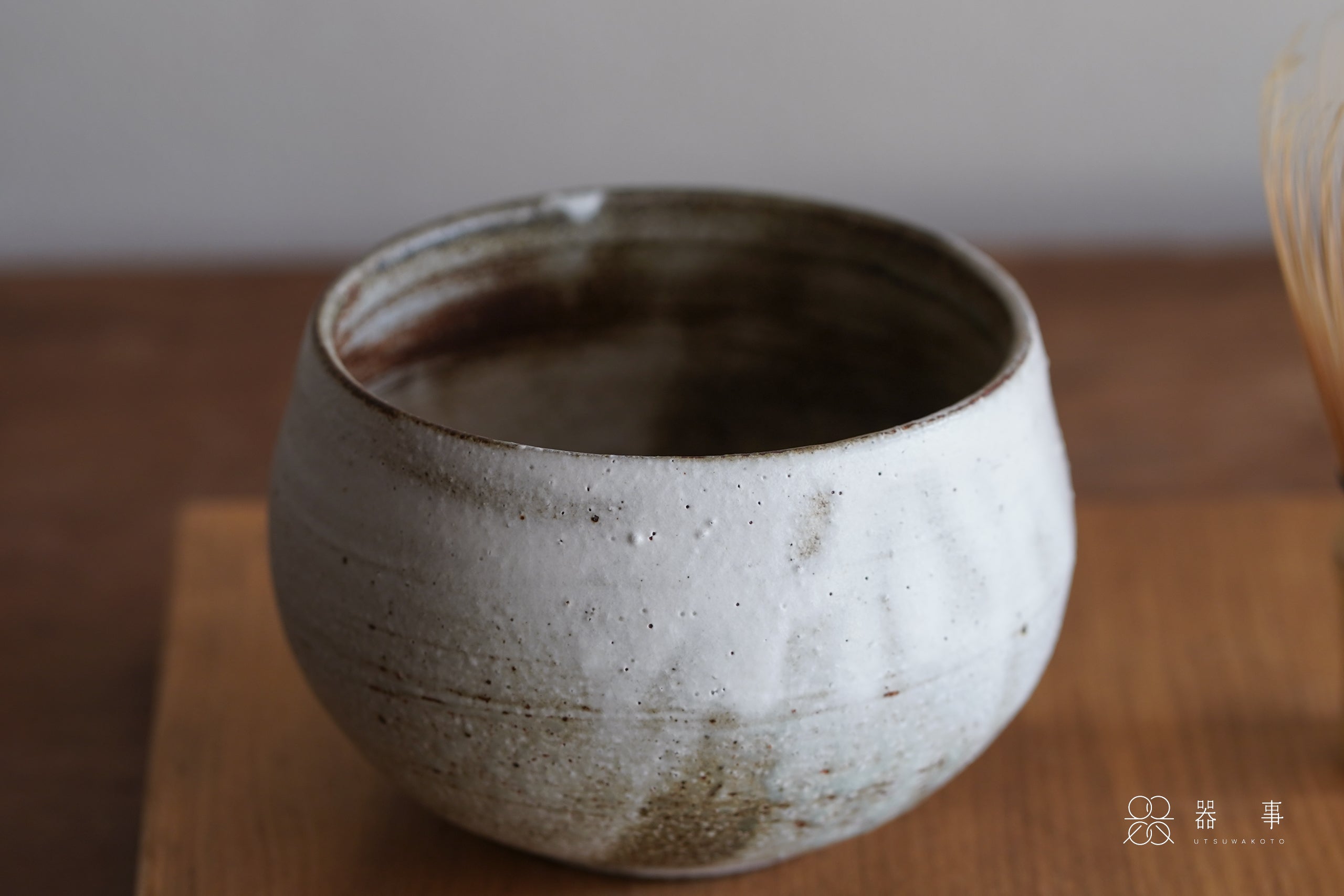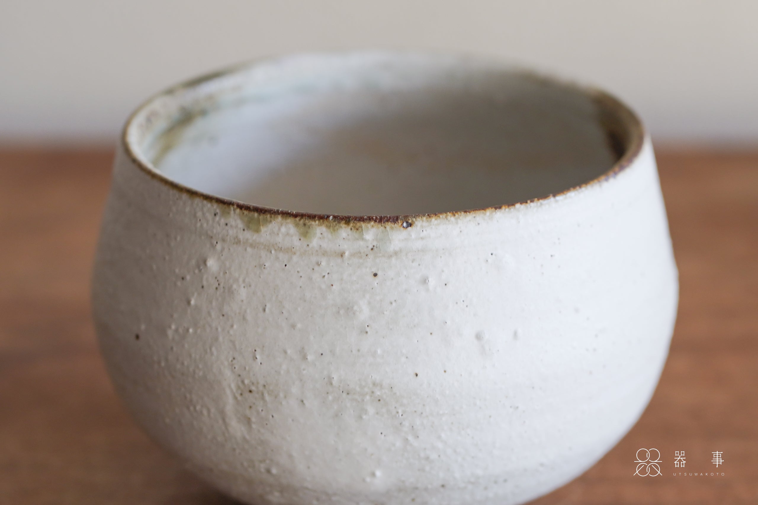 山本一仁老師製作的白化粧圓茶碗,是一只內外皆有景色可賞的抹茶碗。