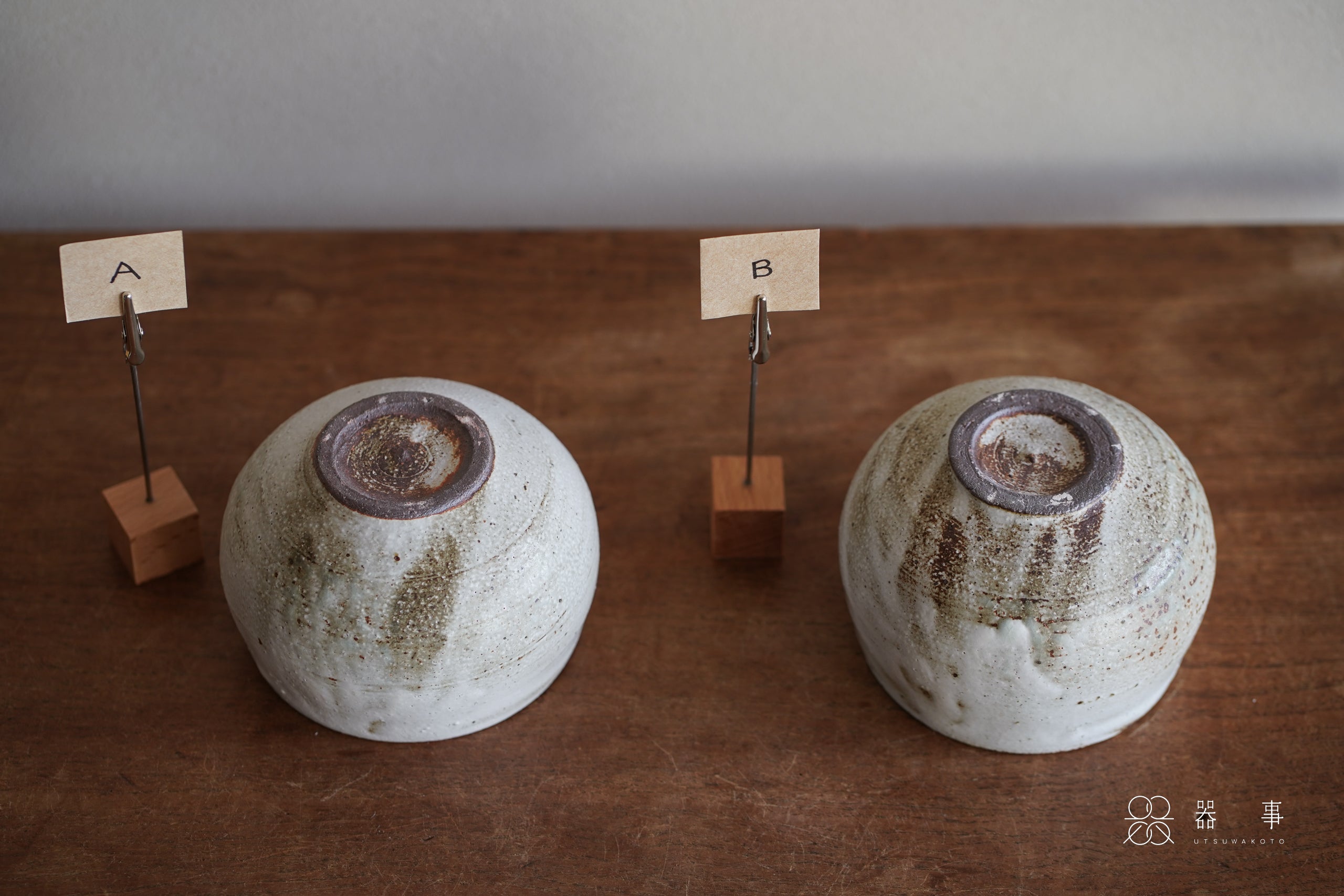 • 茶碗外側表面可見細微的孔洞與凸點,這是白化粧技法的自然特徵。化粧土在燒成過程中產生氣泡與收縮,會在表面留下這些痕跡,是手工陶器的工藝印記而非瑕疵。