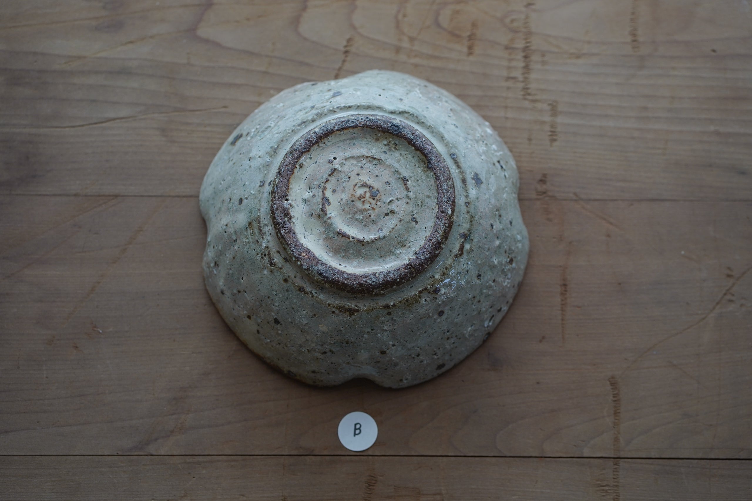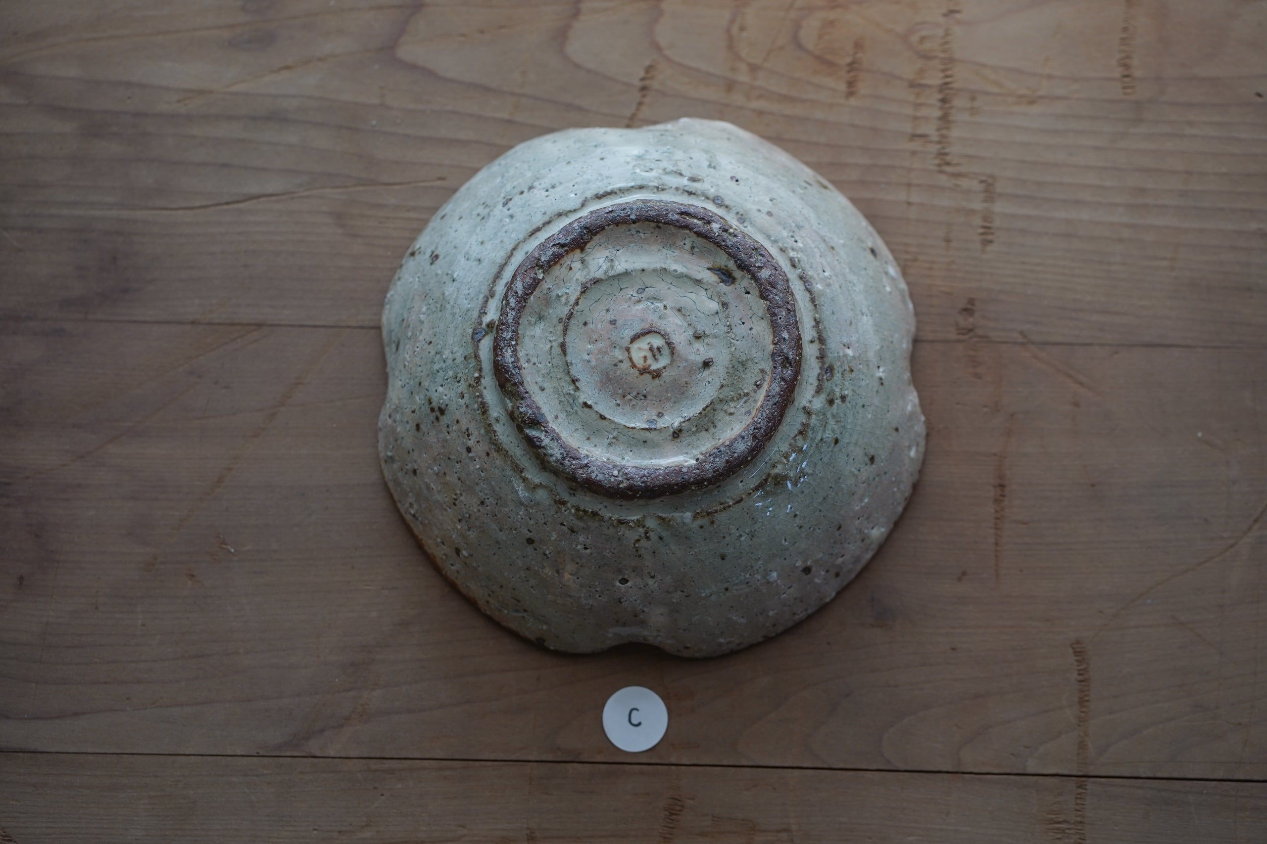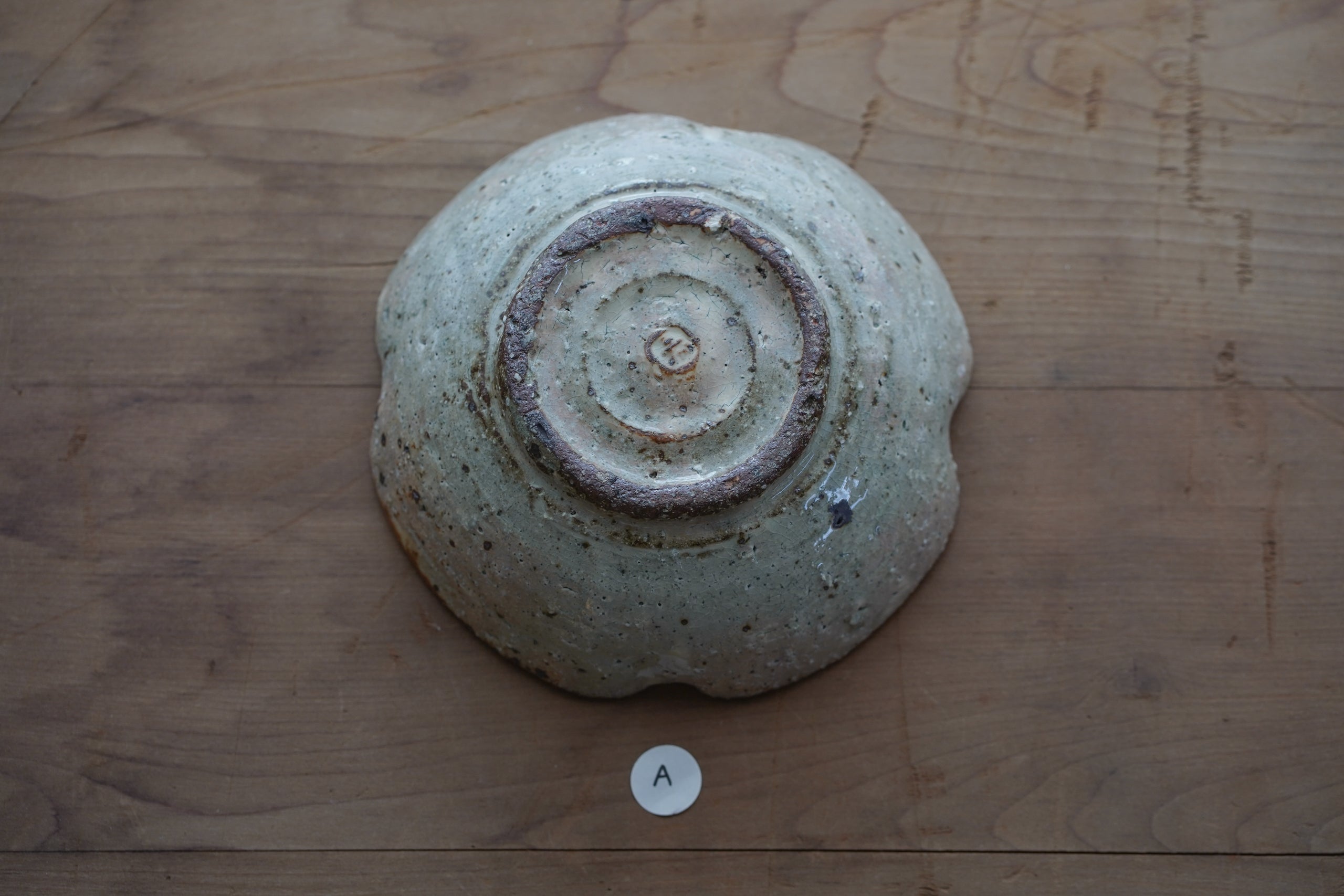 小辻真一老師的作品屬於伊賀燒,在伊賀土上施以白化粧土後再上灰釉,燒成後呈現玻璃質感的光澤,灰釉每次燒成的顏色都會有點變化,表面可能出現淡粉色、青綠色等不同顏色交織。