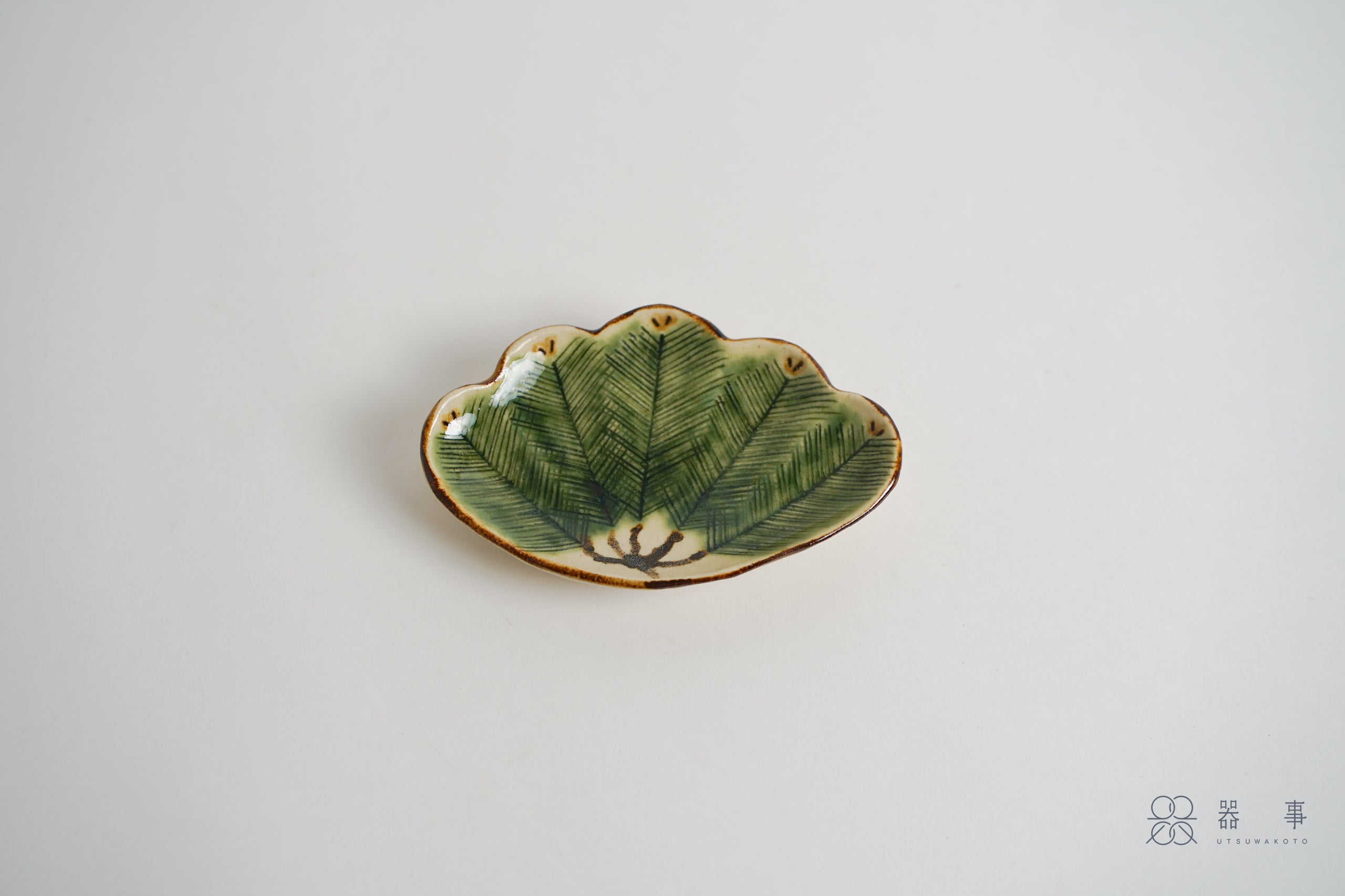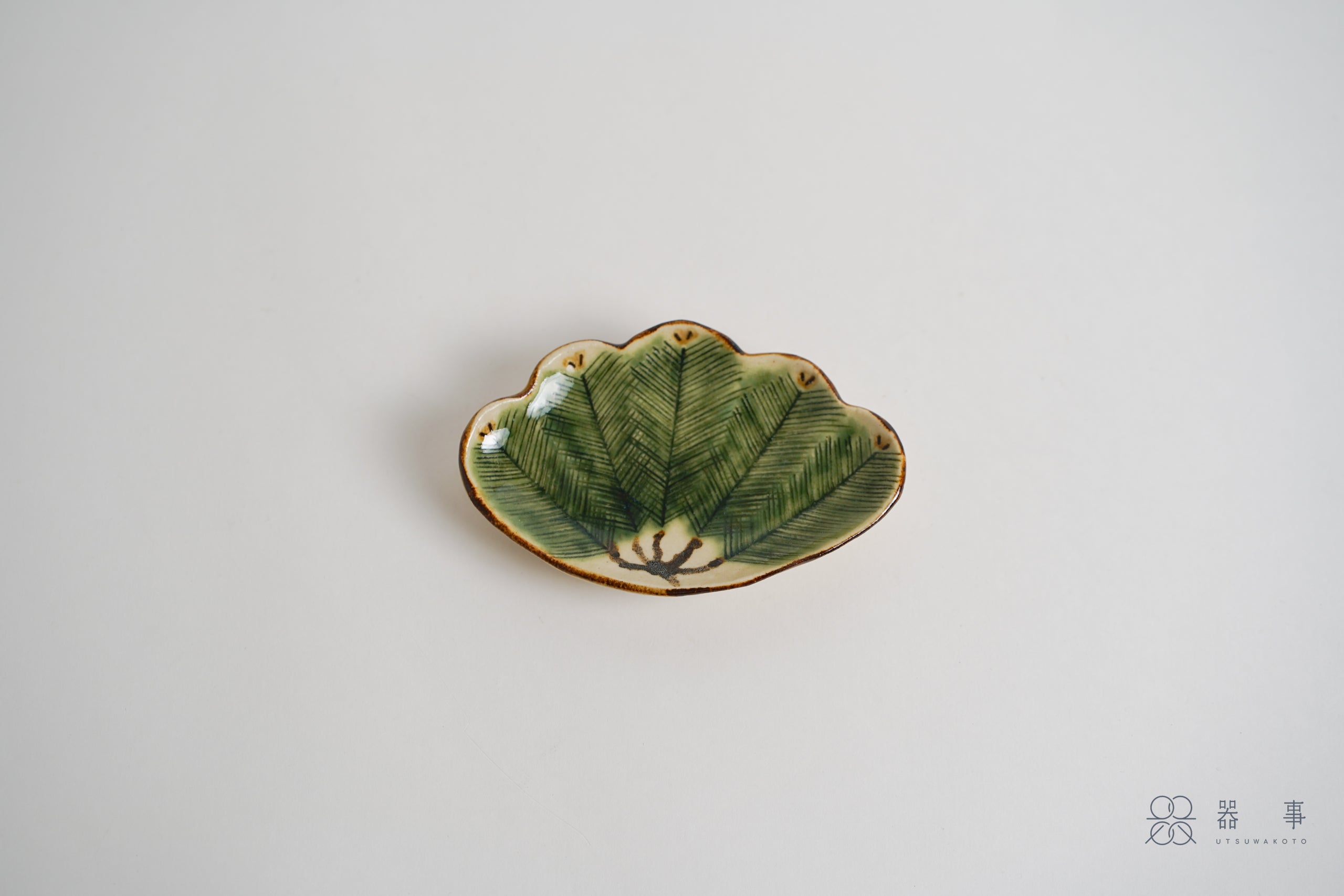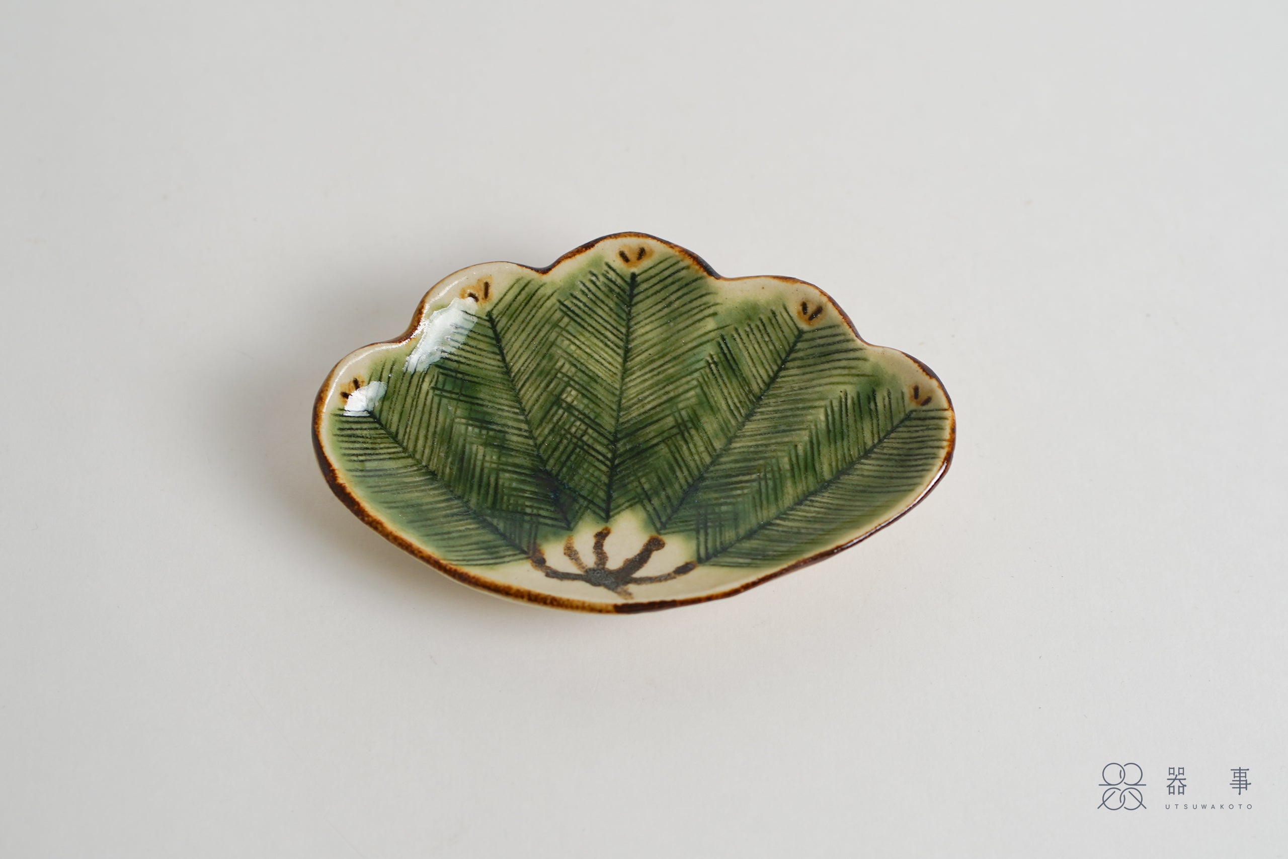 這只小皿的外形取自松葉束的輪廓,邊緣呈現優美的波浪弧度。