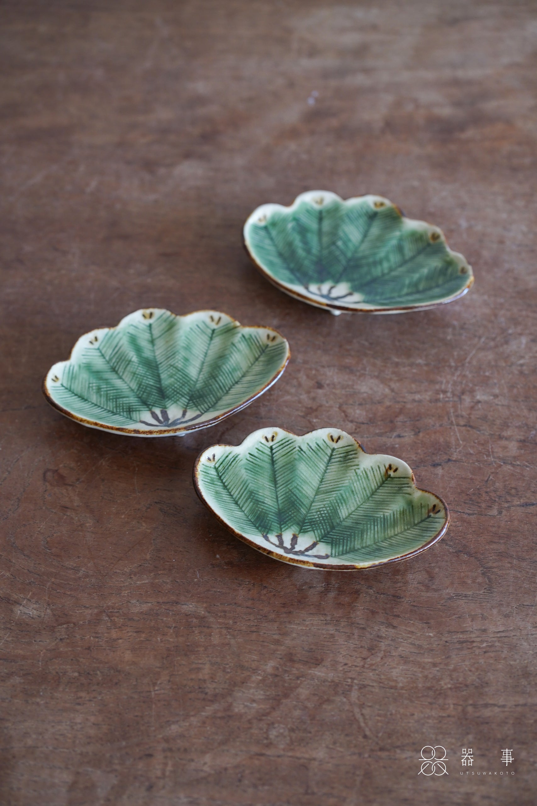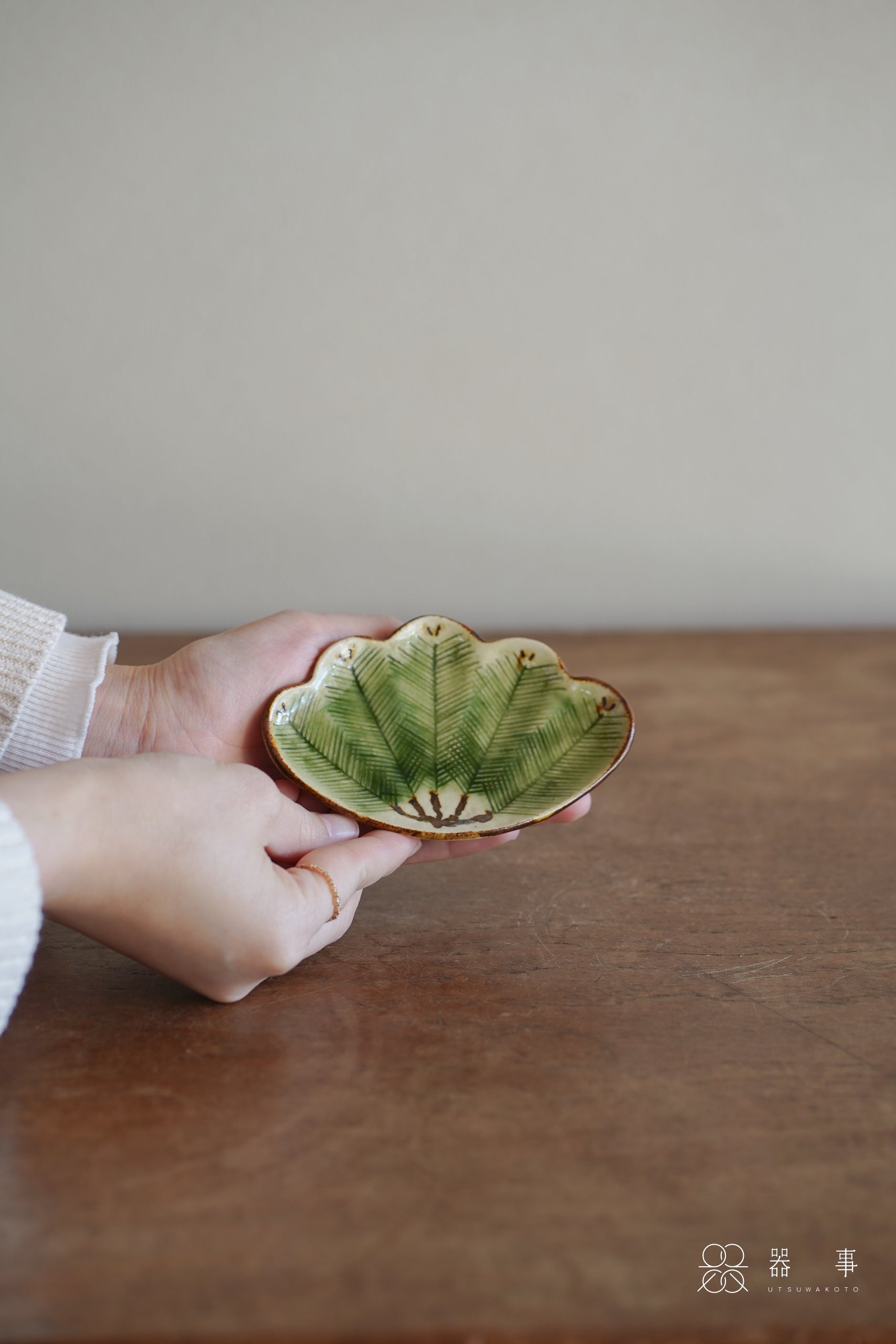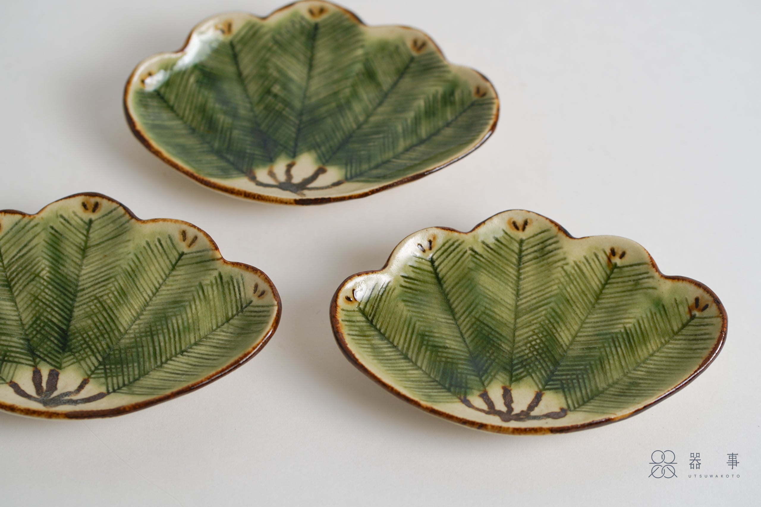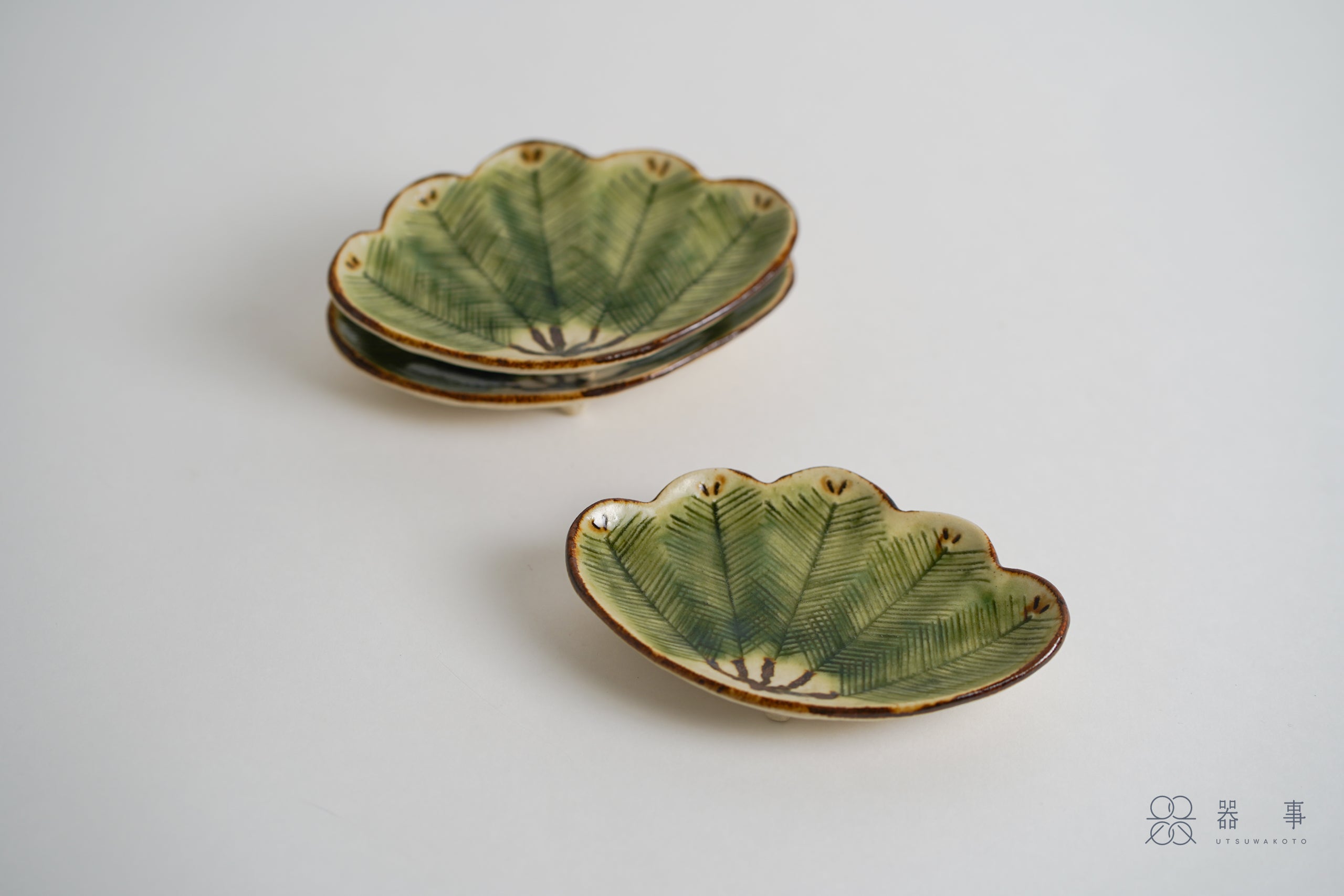 這只小皿的外形取自松葉束的輪廓,邊緣呈現優美的波浪弧度。